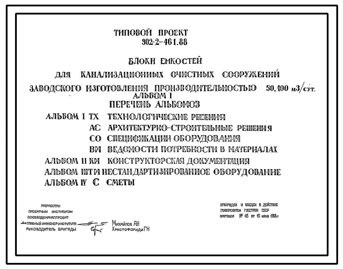 Типовой проект 902-2-461.88 Блок емкостей для канализационных очистных сооружений заводского изготовления произвдительностью 50, 100 м.куб/сут