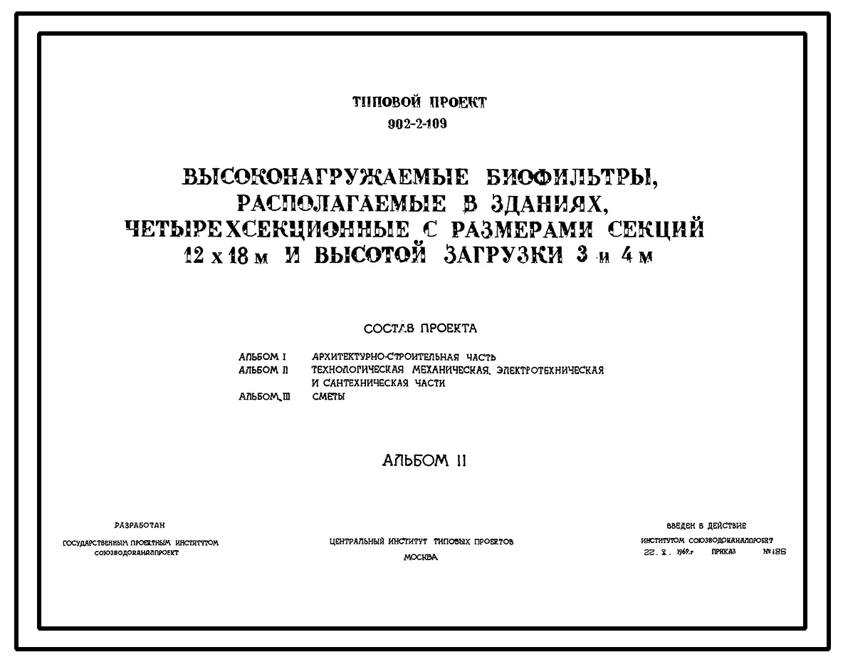 Типовой проект 902-2-109 Высоконагружаемые биофильтры, располагаемые в зданиях, четырехсекционные с размерами секций 12х18 м и высотой загрузки 3 и 4 м