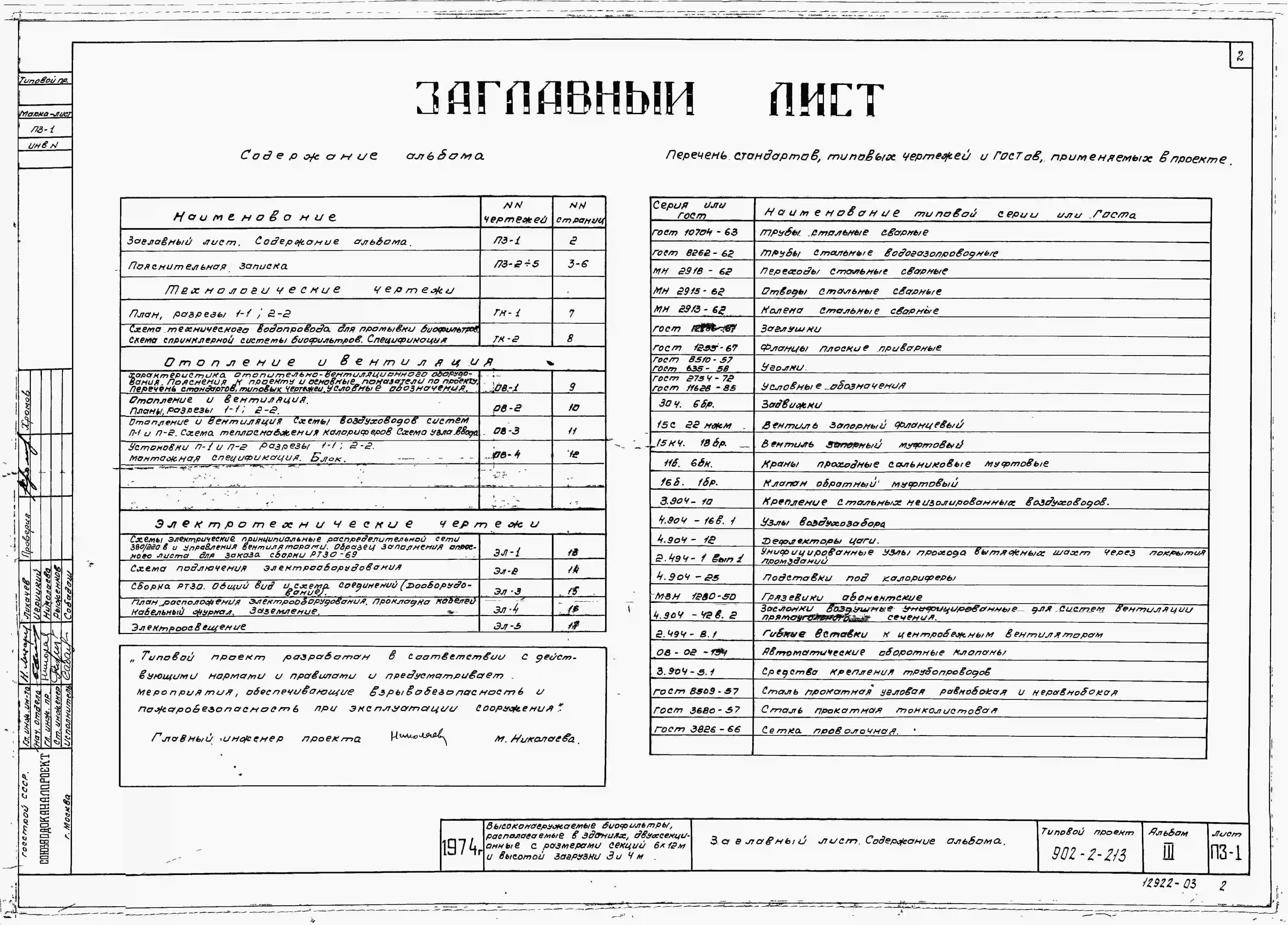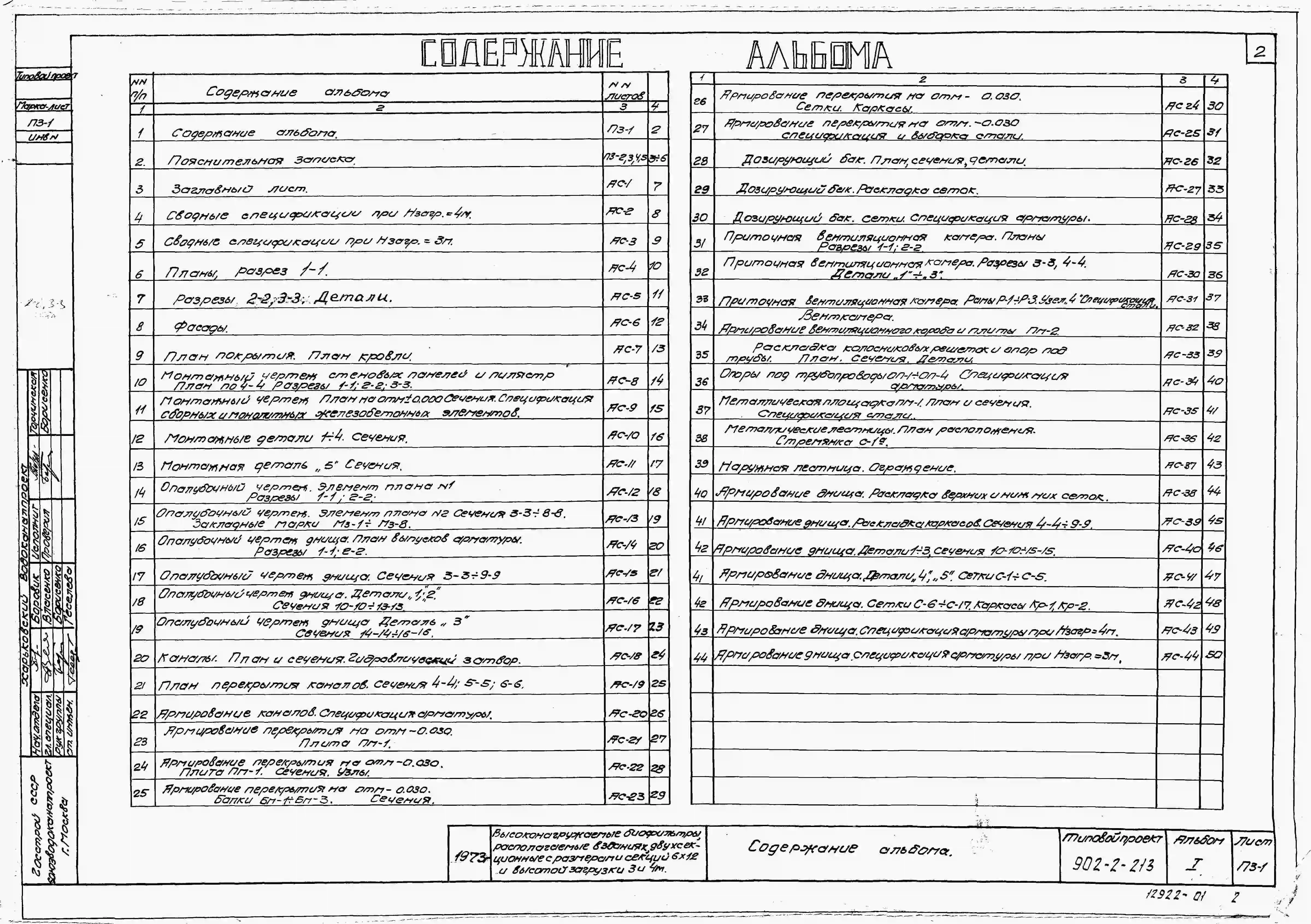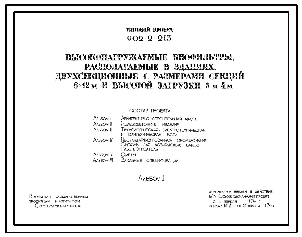 Типовой проект 902-2-213 Высоконагружаемые биофильтры, располагаемые в зданиях, двухсекционные с размерами секций 6х12 м и высотой загрузки 3 и 4 м