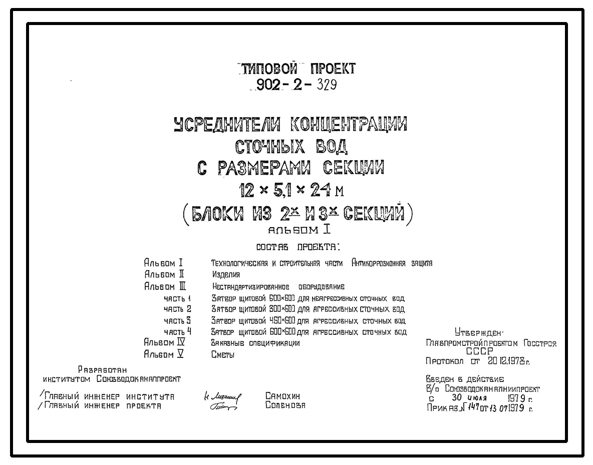 Типовой проект 902-2-329 Усреднители концентрации сточных вод с размерами секции 12 х 5,1 х 24 м (блоки из 2-ух и 3-х секций)