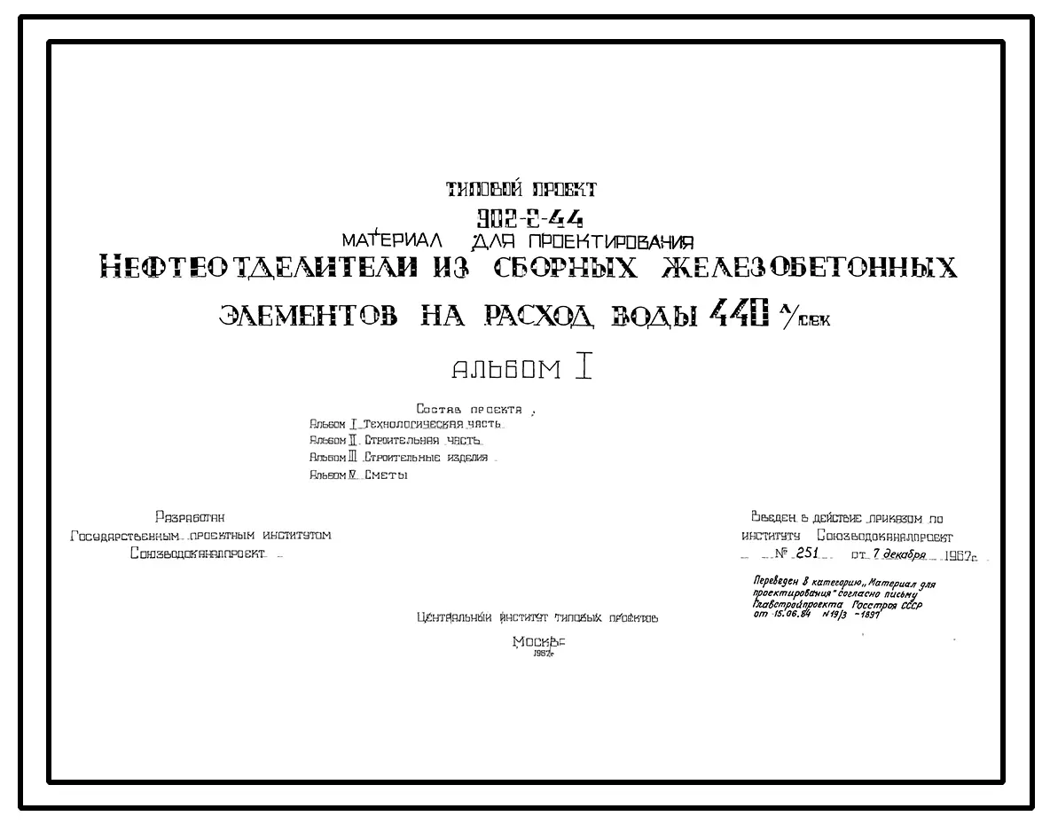 Типовой проект 902-2-44 Нефтеотделители из сборных железобетонных элементов на расход воды 440 л/сек