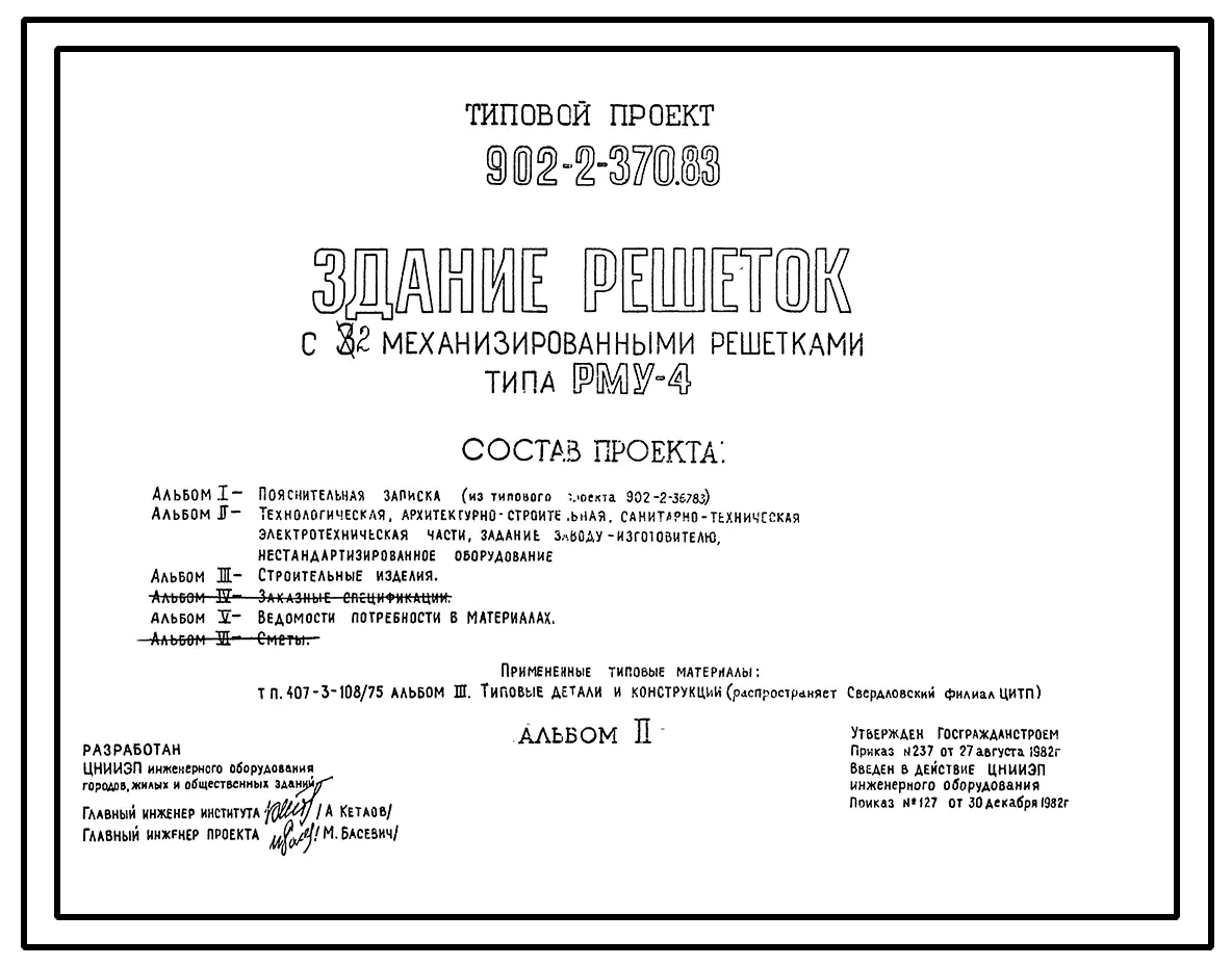 Типовой проект 902-2-370.83 Здание решеток с 3 механизированными решетками типа РМУ-4