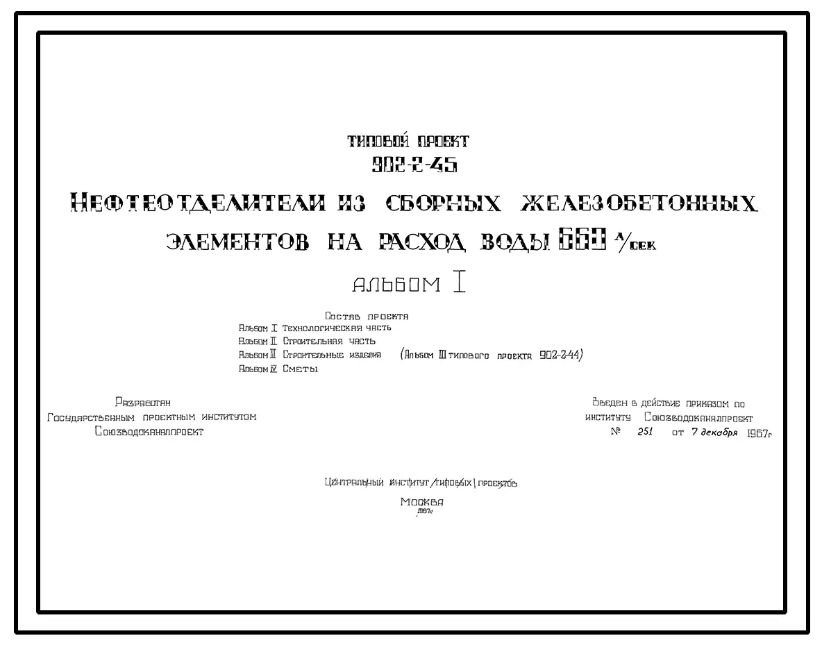 Типовой проект 902-2-45 Нефтеотделители из сборных железобетонных элементов на расход воды 660 л/сек