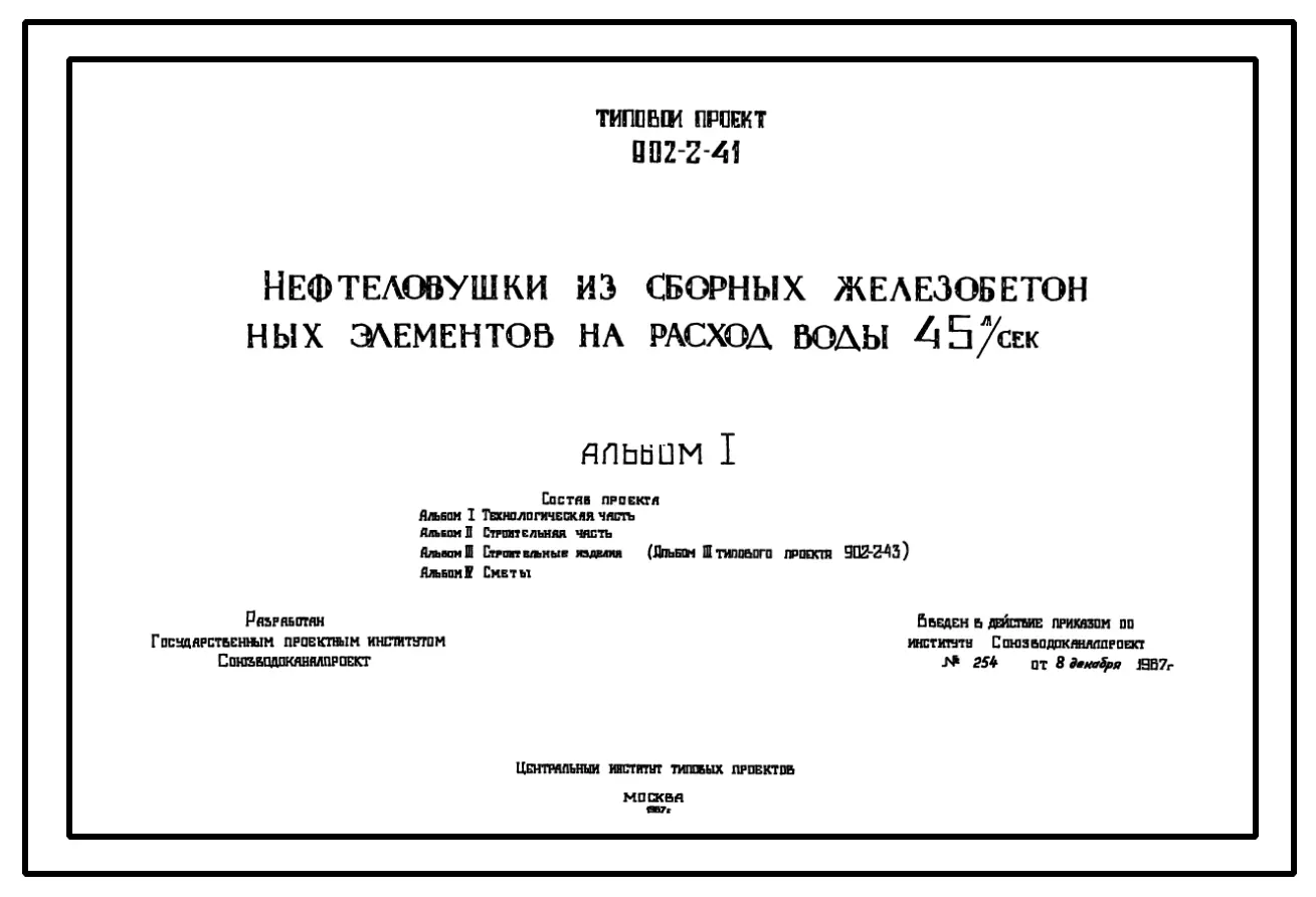 Типовой проект 902-2-41 Нефтеловушка из сборных железобетонных элементов на расход воды 45 л/сек