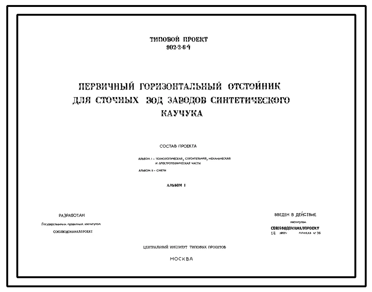 Типовой проект 902-2-64 Первичный горизонтальный отстойник для сточных вод заводов синтетического каучука