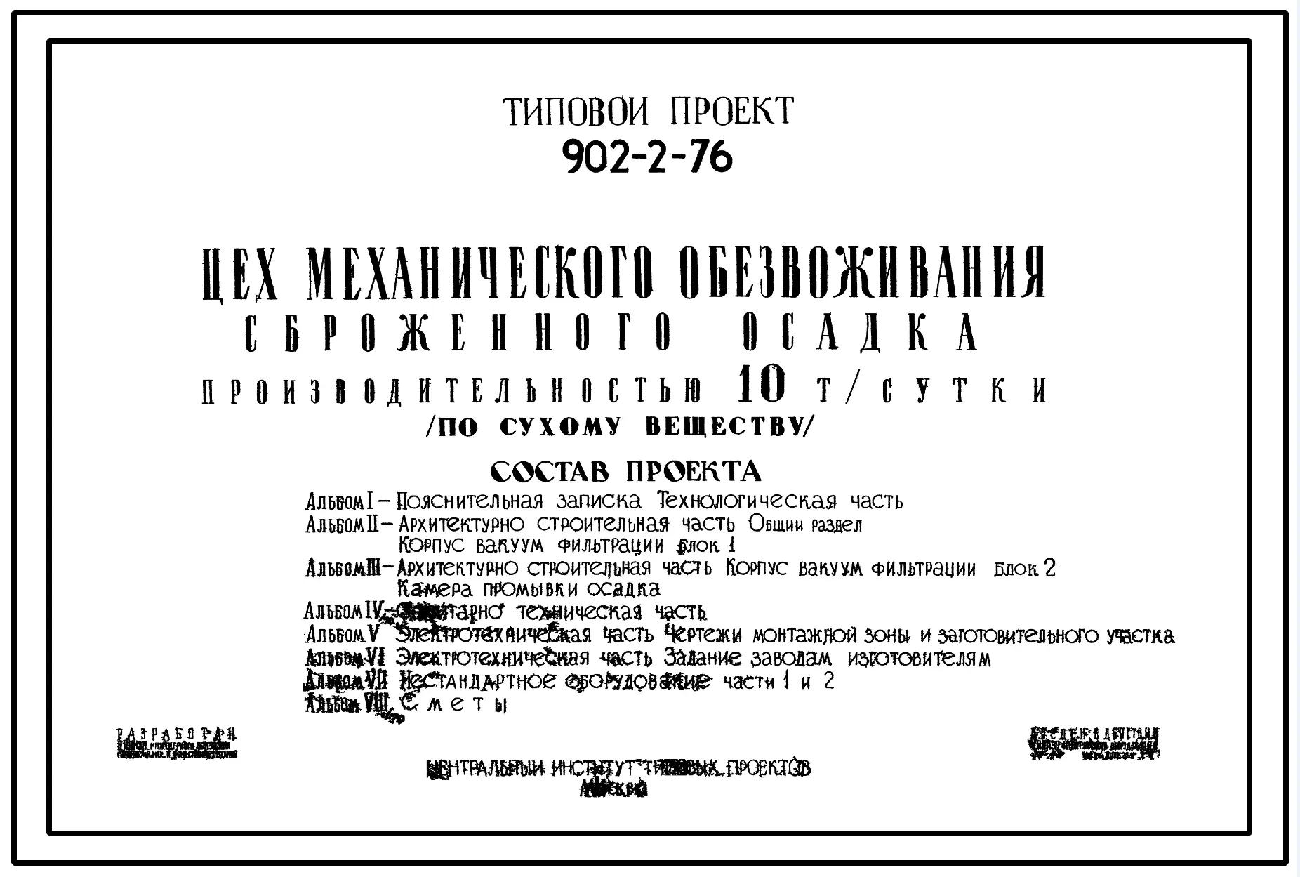 Типовой проект 902-2-76 Цех механического обезвоживания сброженного осадка производительностью 10 т/сутки (по сухому веществу).
