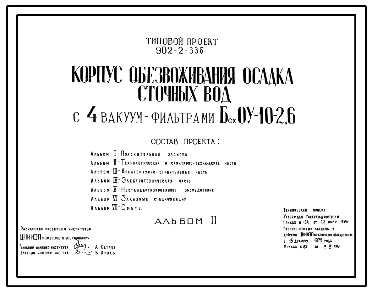 Типовой проект 902-2-336 Корпус обезвоживания осадка сточных вод с 4 вакуум-фильтрами Бсх 04-10-2,6