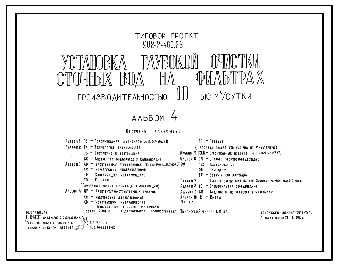 Типовой проект 902-2-466.89 Установка глубокой очистки сточных вод на фильтрах производительностью 10 000 м3/сутки.