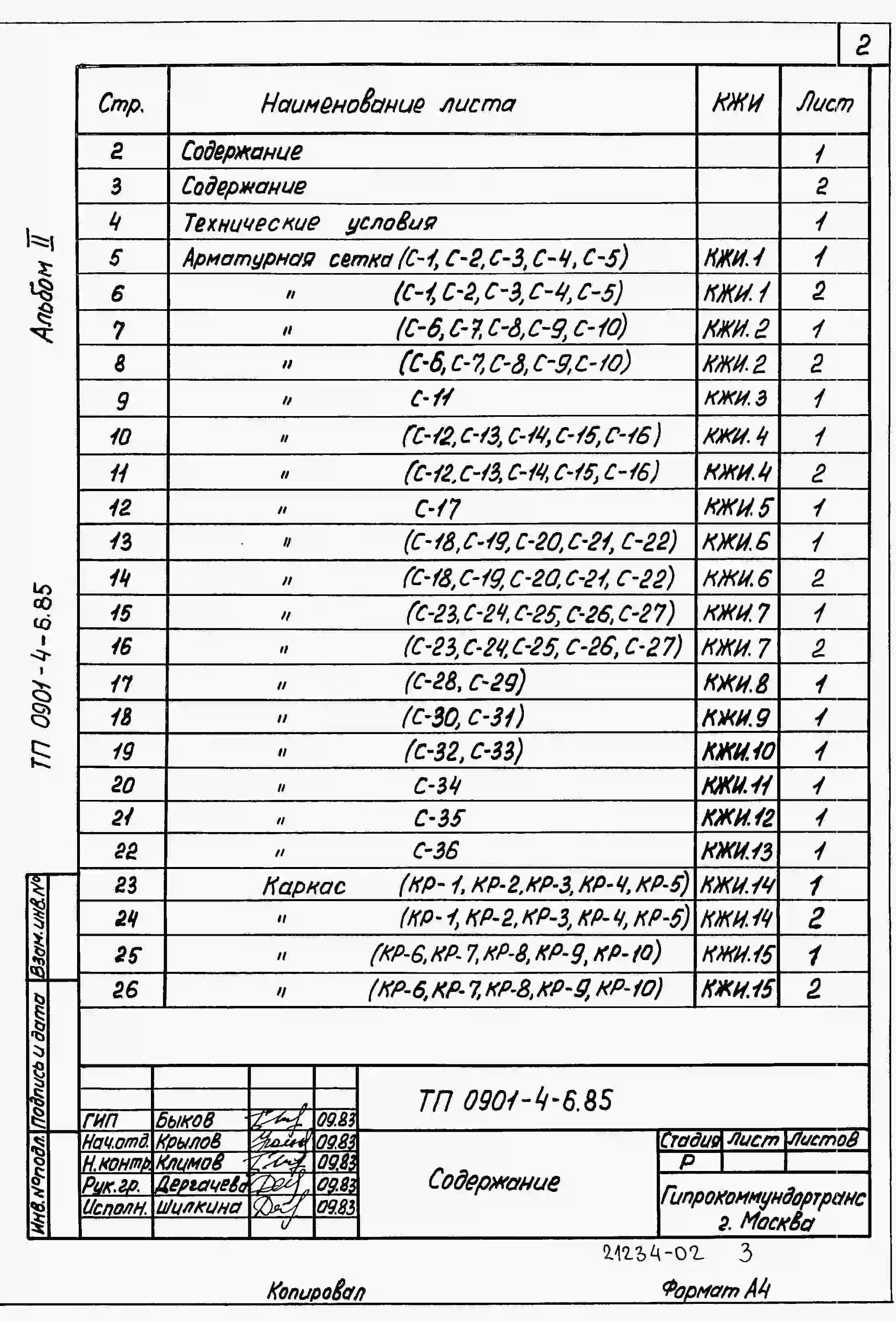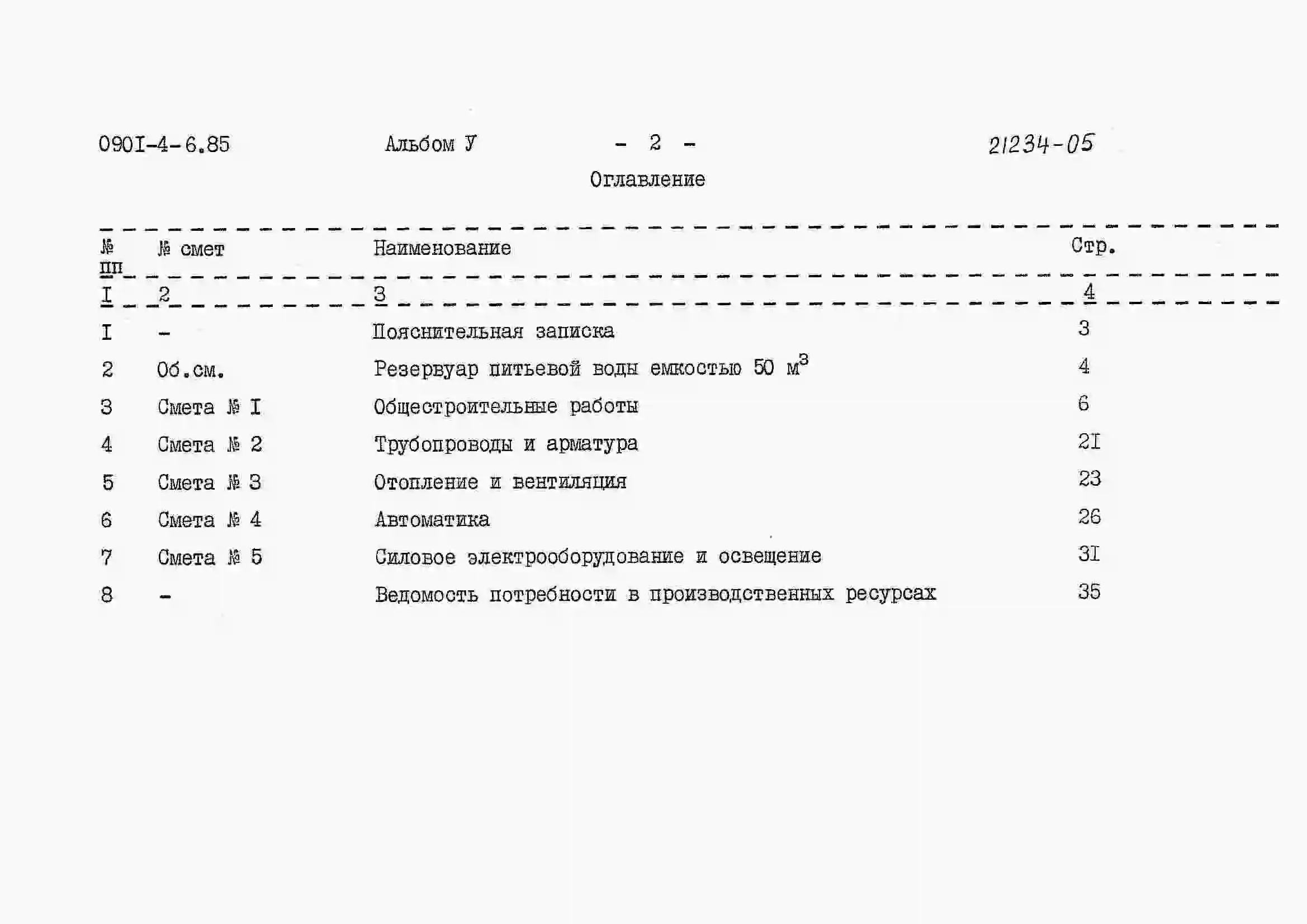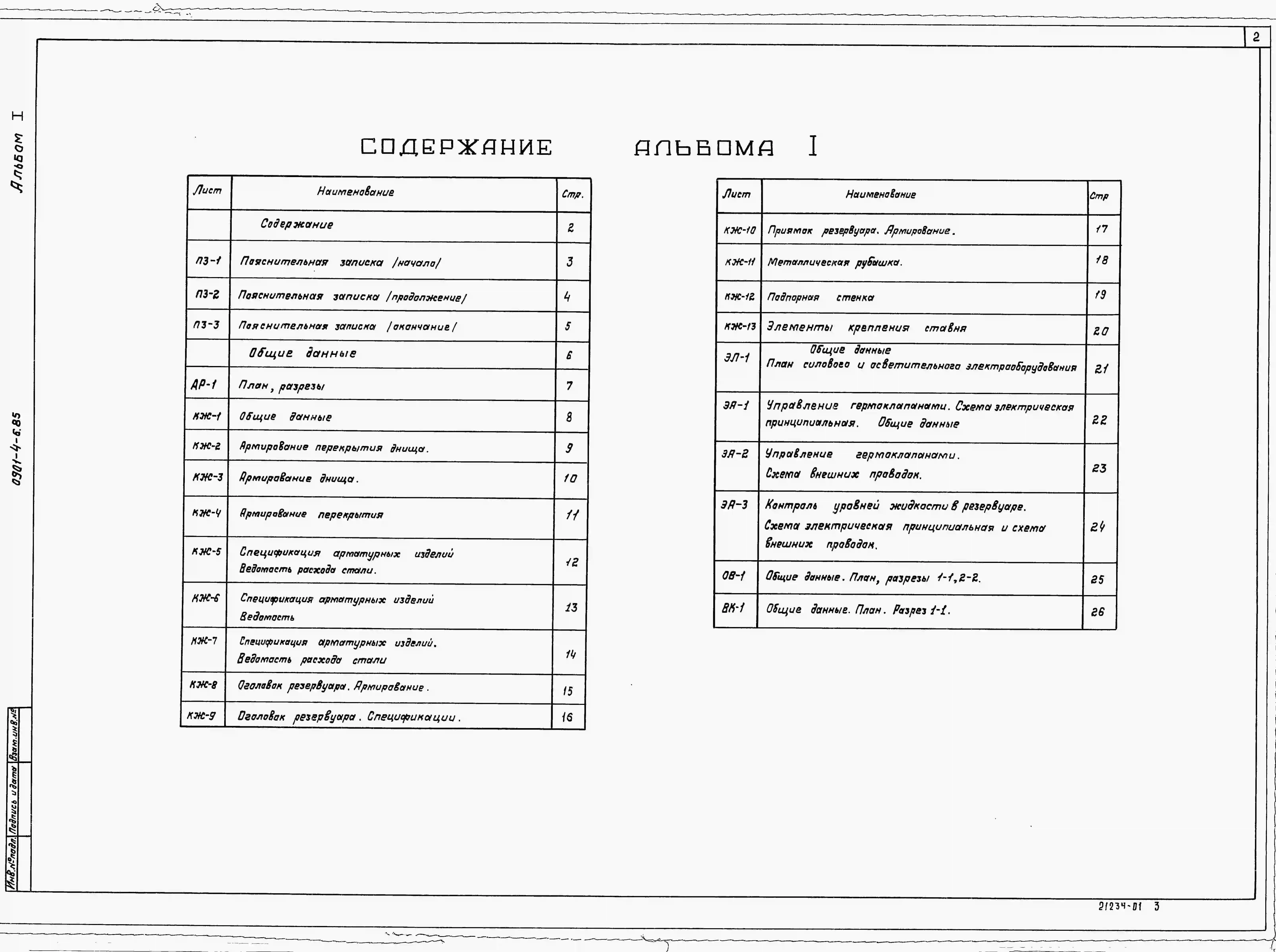 Типовой проект 0901-4-6.85 Резервуар питьевой воды сборно-монолитный железобетонный прямоугольной емкостью 50 м3 II, III, IV классов защиты