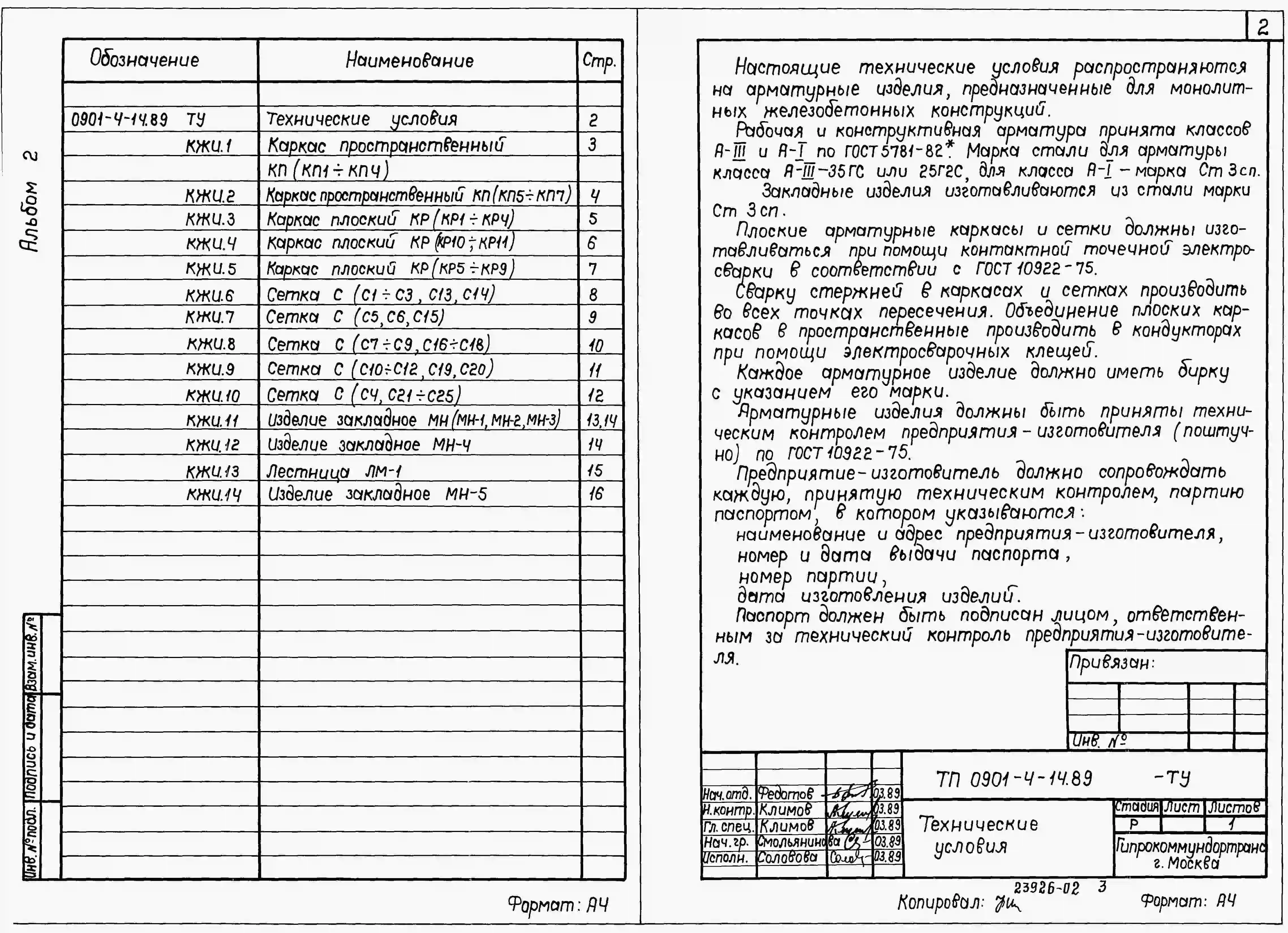 Типовой проект 0901-4-14.89 Заглубленный резервуар технической воды сборно-монолитный железобетонный прямоугольный емкостью 400 м3 II, III, IV классов защиты