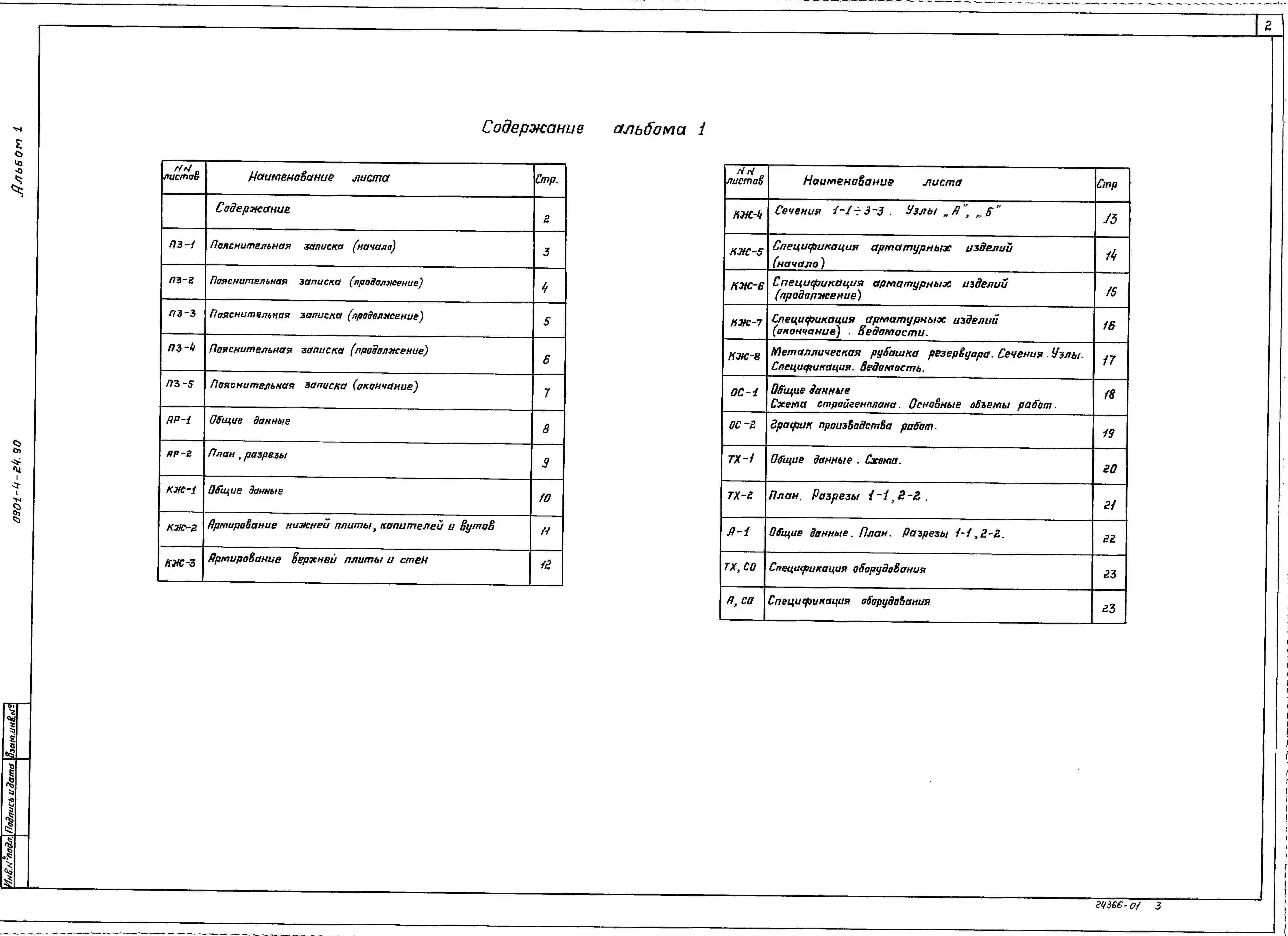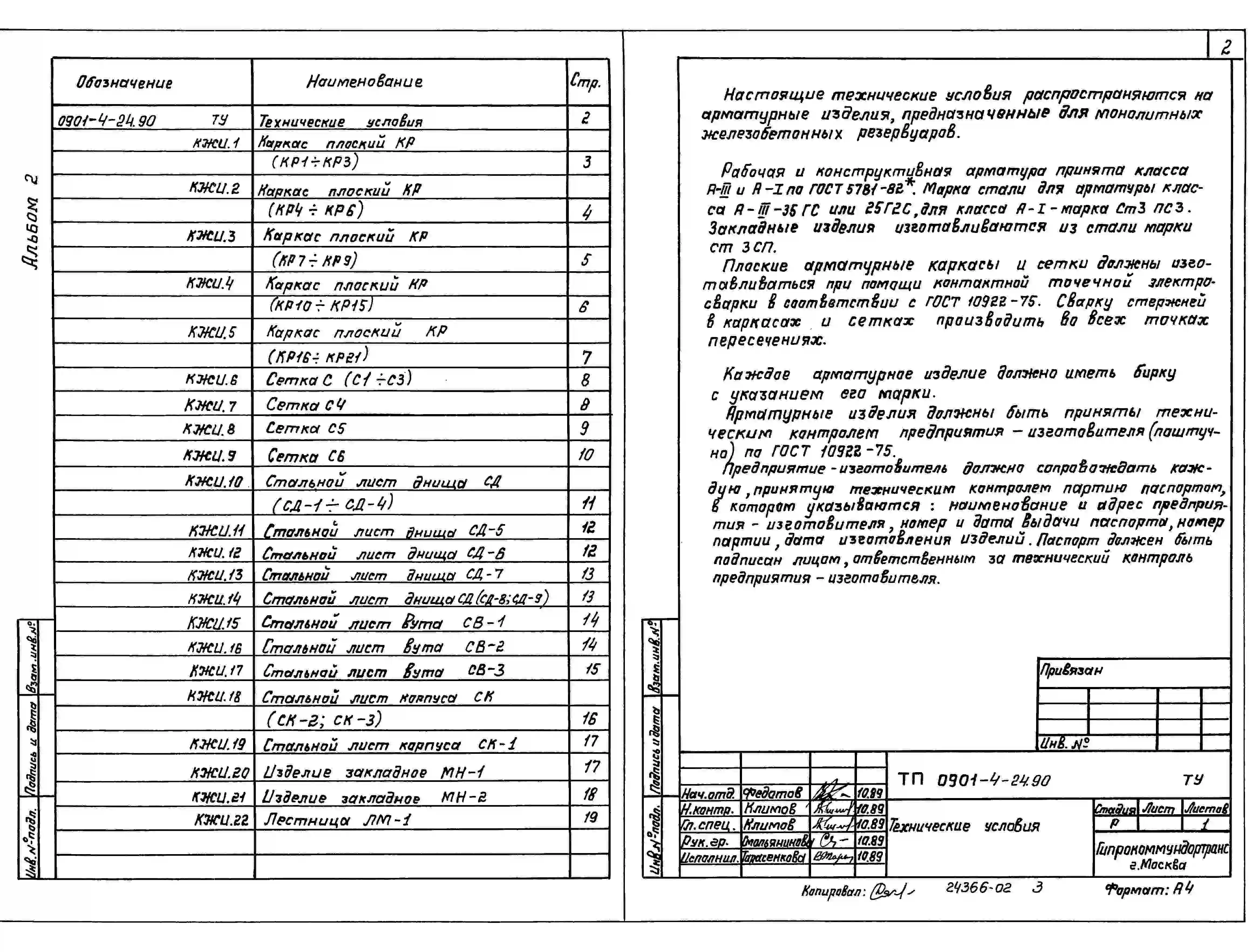 Типовой проект 0901-4-24.90 Заглубленный резервуар технической воды монолитный железобетонный цилиндрической емкостью 1000 м3 II, III, IV классов защиты
