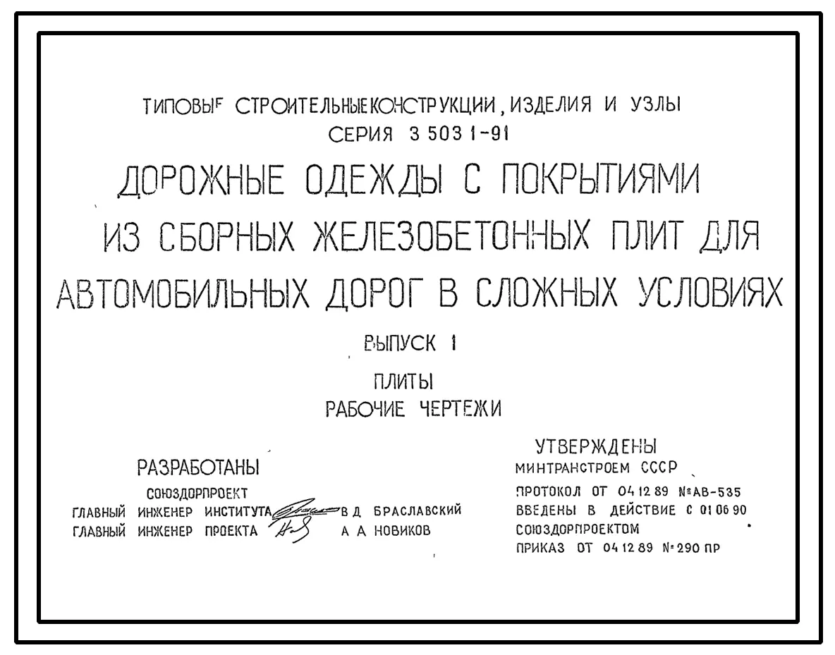 Серия 3.503.1-91 Дорожные одежды с покрытиями из сборных железобетонных плит для автомобильных дорог в сложных условиях. Материалы для проектирования и рабочие чертежи.