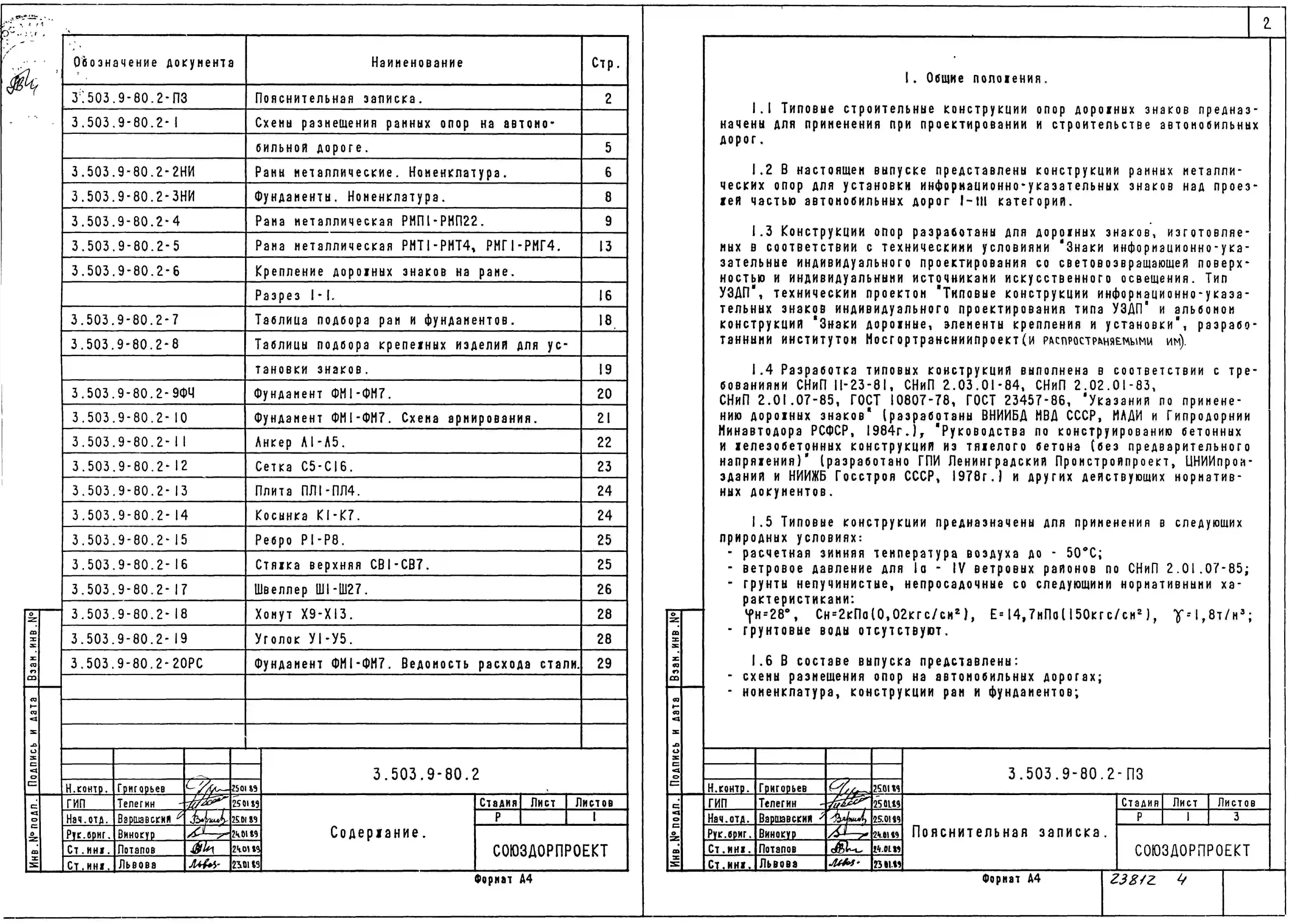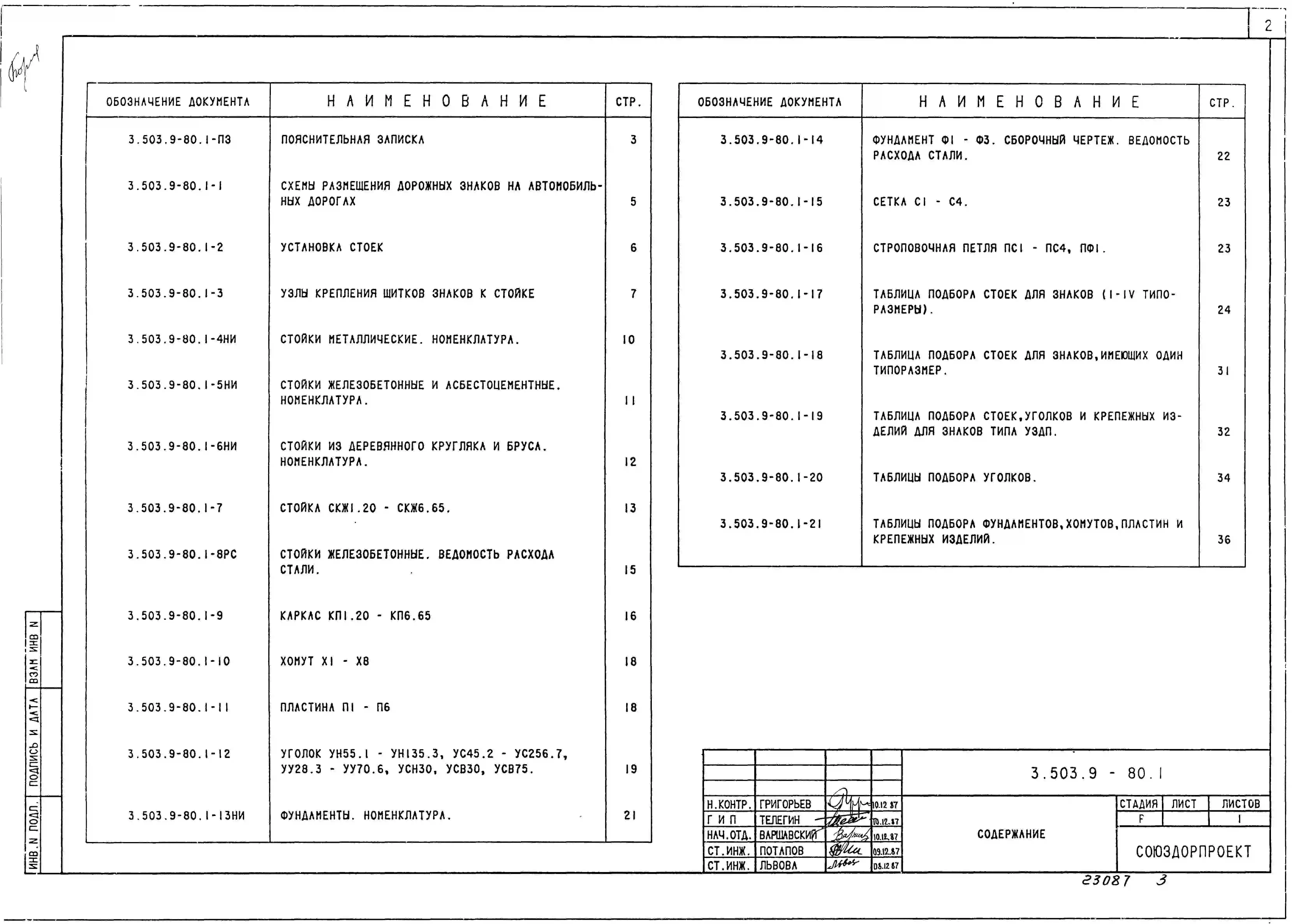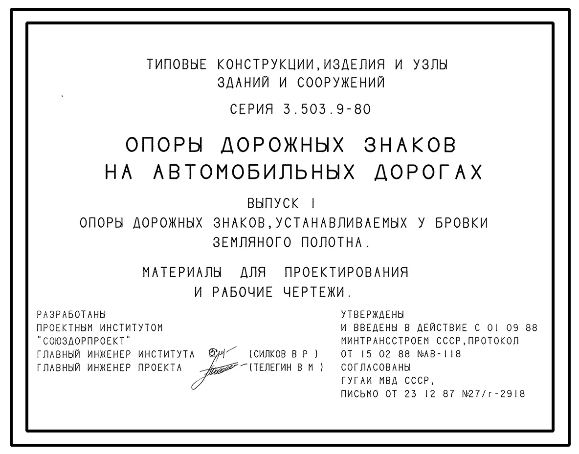 Серия 3.503.9-80 Опоры дорожных знаков на автомобильных дорогах. Материалы для проектирования и рабочие чертежи.