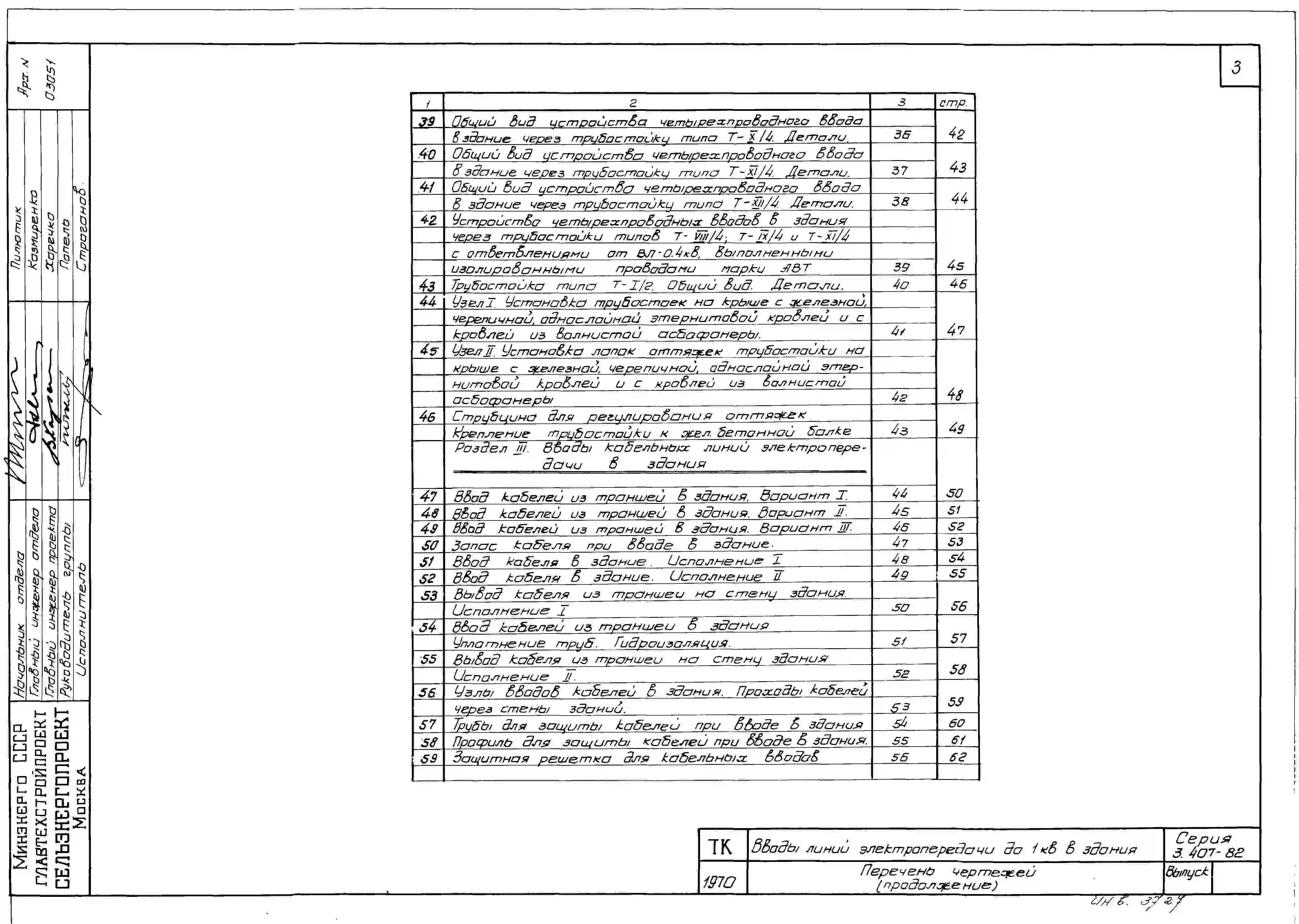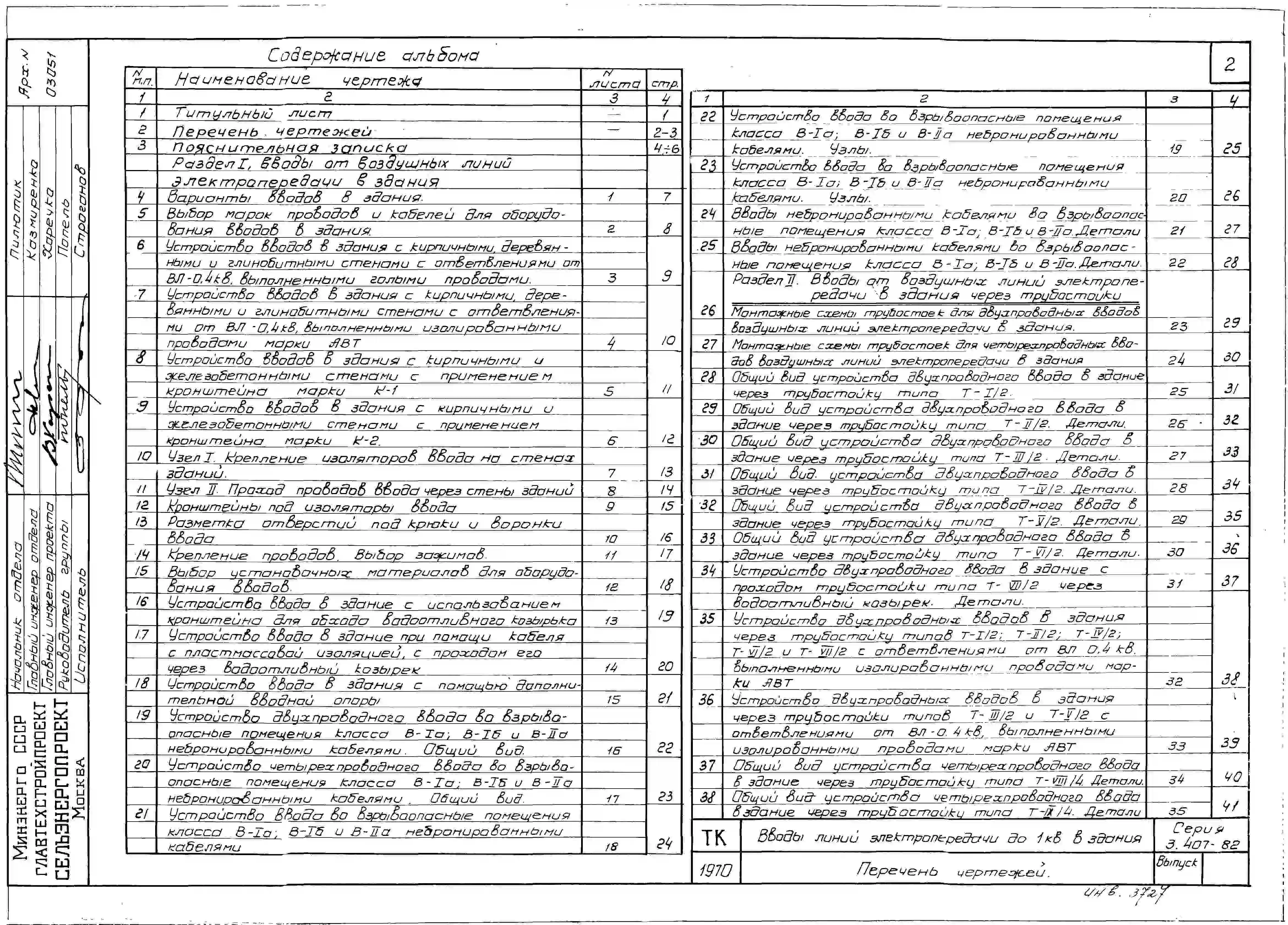 Серия 3.407-82 Вводы линий электропередачи до 1 кв в здания. Рабочие чертежи.