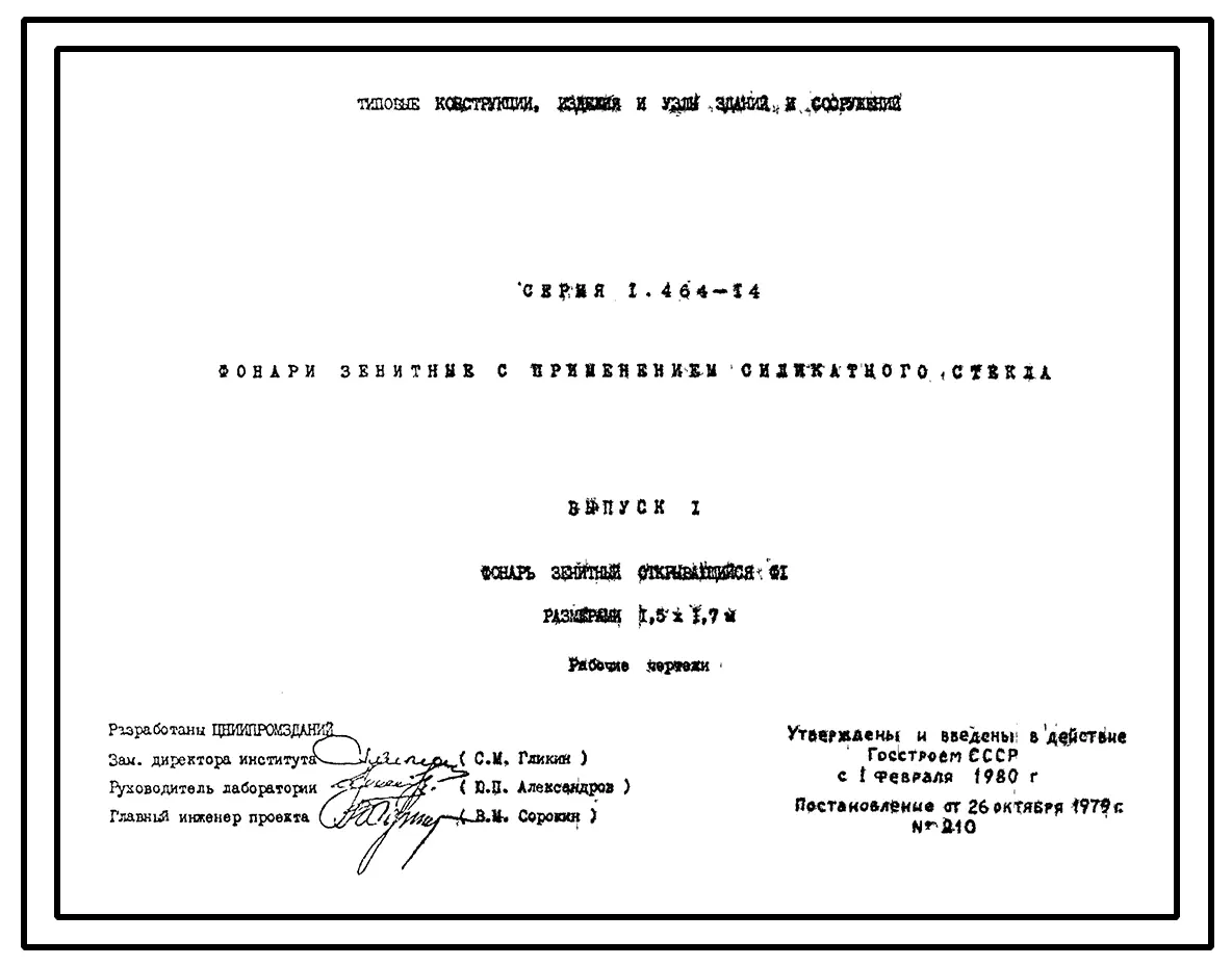 Серия 1.464-14 Фонари зенитные с применением силикатного стекла. Материалы для проектирования.