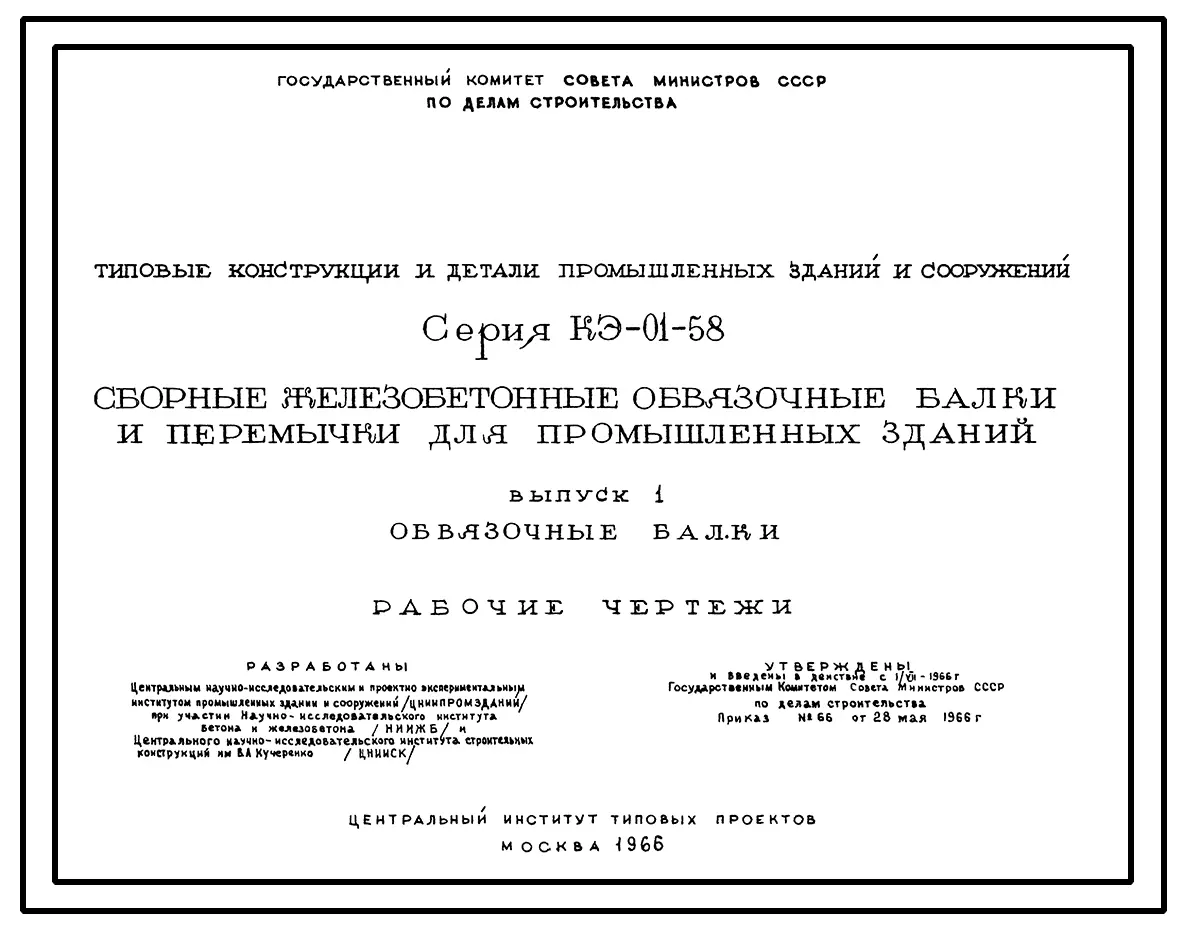 Серия КЭ-01-58 Сборные железобетонные обвязочные балки и перемычки для промышленных зданий. Рабочие чертежи.