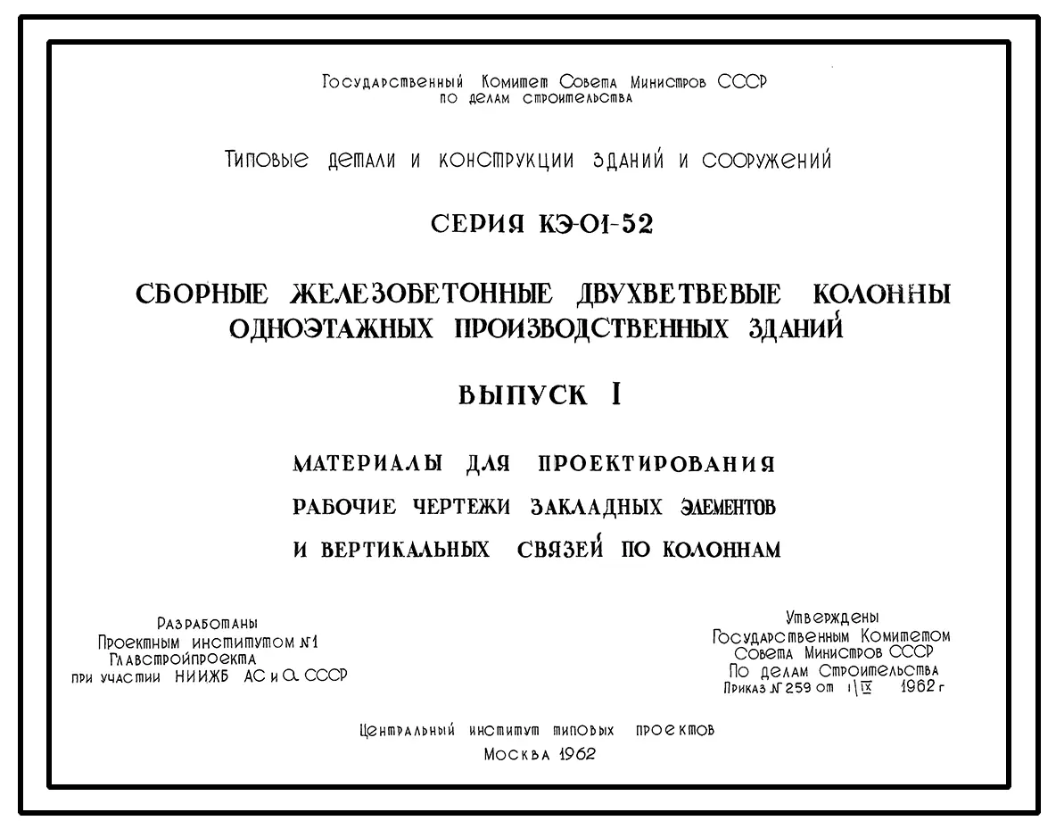 Серия КЭ-01-52 Сборные железобетонные двухветвевые колонны для одноэтажных производственных зданий. Рабочие чертежи.