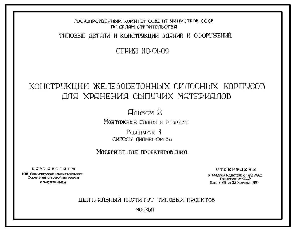 Серия ИС-01-09 Конструкции железобетонных силосных корпусов для хранения сыпучих материалов. Материалы для проектирования.