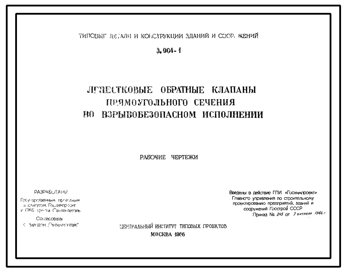 Серия 3.904-1 Лепестковые обратные клапаны прямоугольного сечения во взрывобезопасном исполнении. Рабочие чертежи.