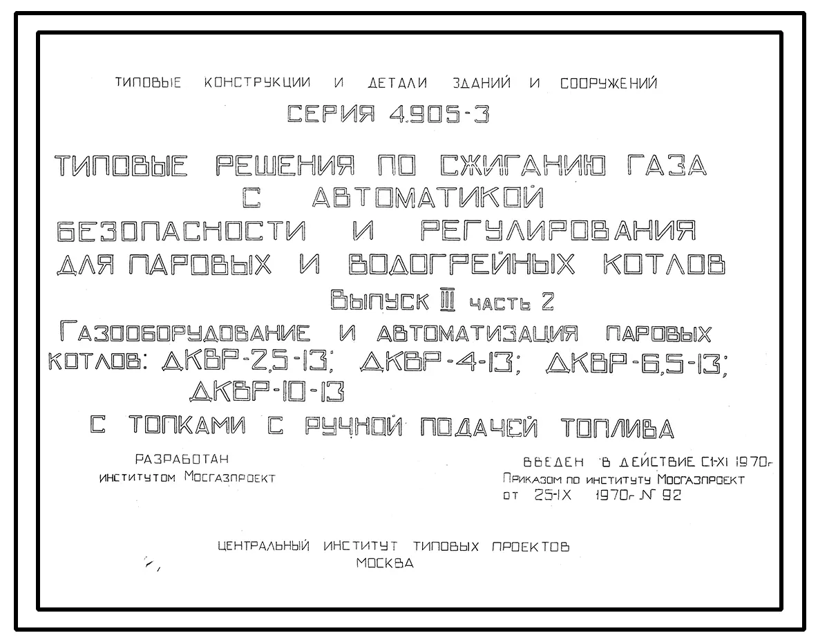 Серия 4.905-3 Типовые решения по сжиганию газа с автоматикой безопасности и регулирования для паровых и водогрейных котлов. Материалы для проектирования.