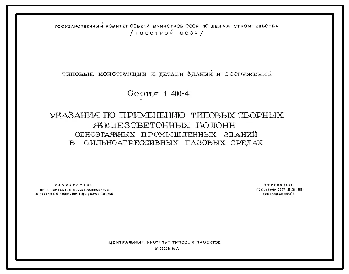 Серия 1.400-4 Указания по применению типовых сборных железобетонных колонн одноэтажных промышленных зданий в сильноагрессивных газовых средах. Материалы для проектирования.