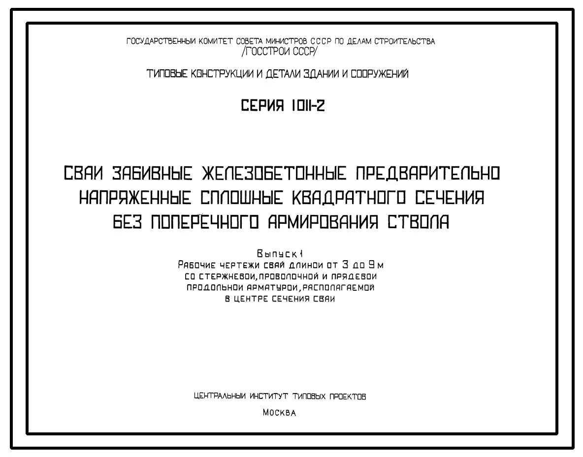 Серия 1.011-2 Сваи забивные железобетонные предварительно напряженные сплошные квадратного сечения без поперечного армирования ствола. Материалы для проектирования.