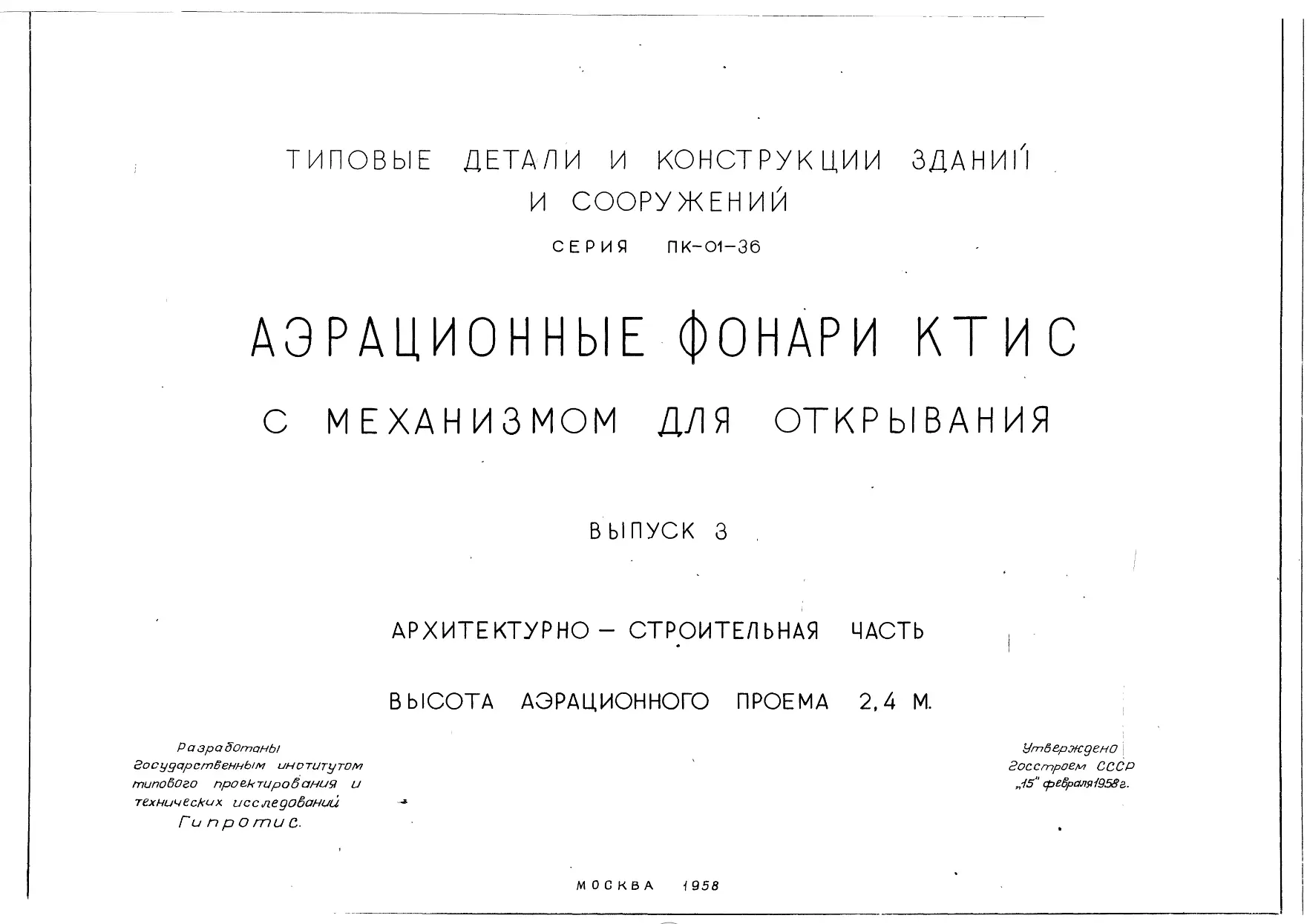 Серия ПК-01-36 Аэрационные фонари КТИС с механизмами открывания. Материалы для проектирования.