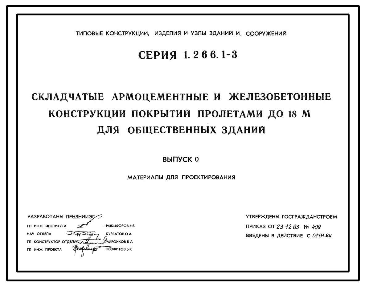 Серия 1.266.1-3 Складчатые армоцементные и железобетонные конструкции покрытий пролетами до 18 м для общественных зданий. Рабочие чертежи.
