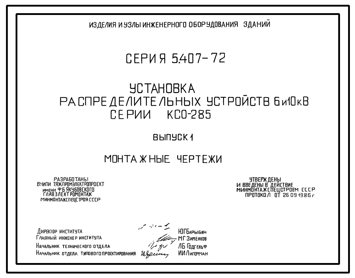 Серия 5.407-72 Установка распределительных устройств 6 и 10 кВ серии КСО-285. Рабочие чертежи.