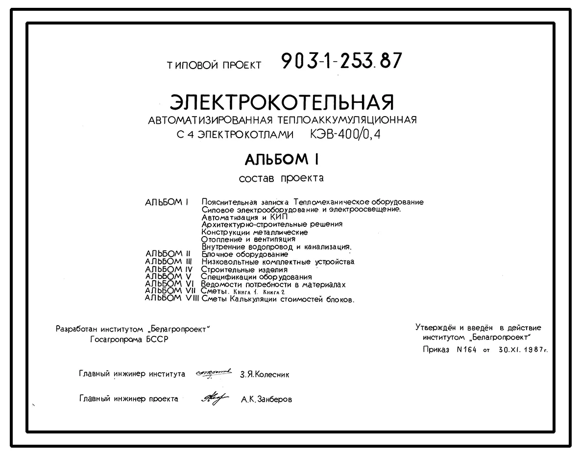 Типовой проект 903-1-253.87 Электрокотельная автоматизированная теплоаккумуляционная с 4 электрокотлами КЭВ-400/0,4