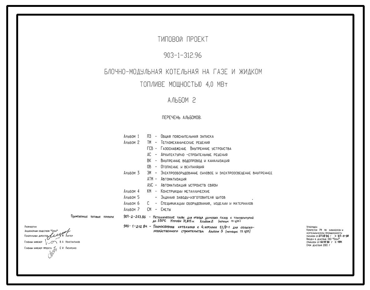 Типовой проект 903-1-312.96 Блочно-модульная котельная на газе и жидком топливе мощностью 4,0 МВт