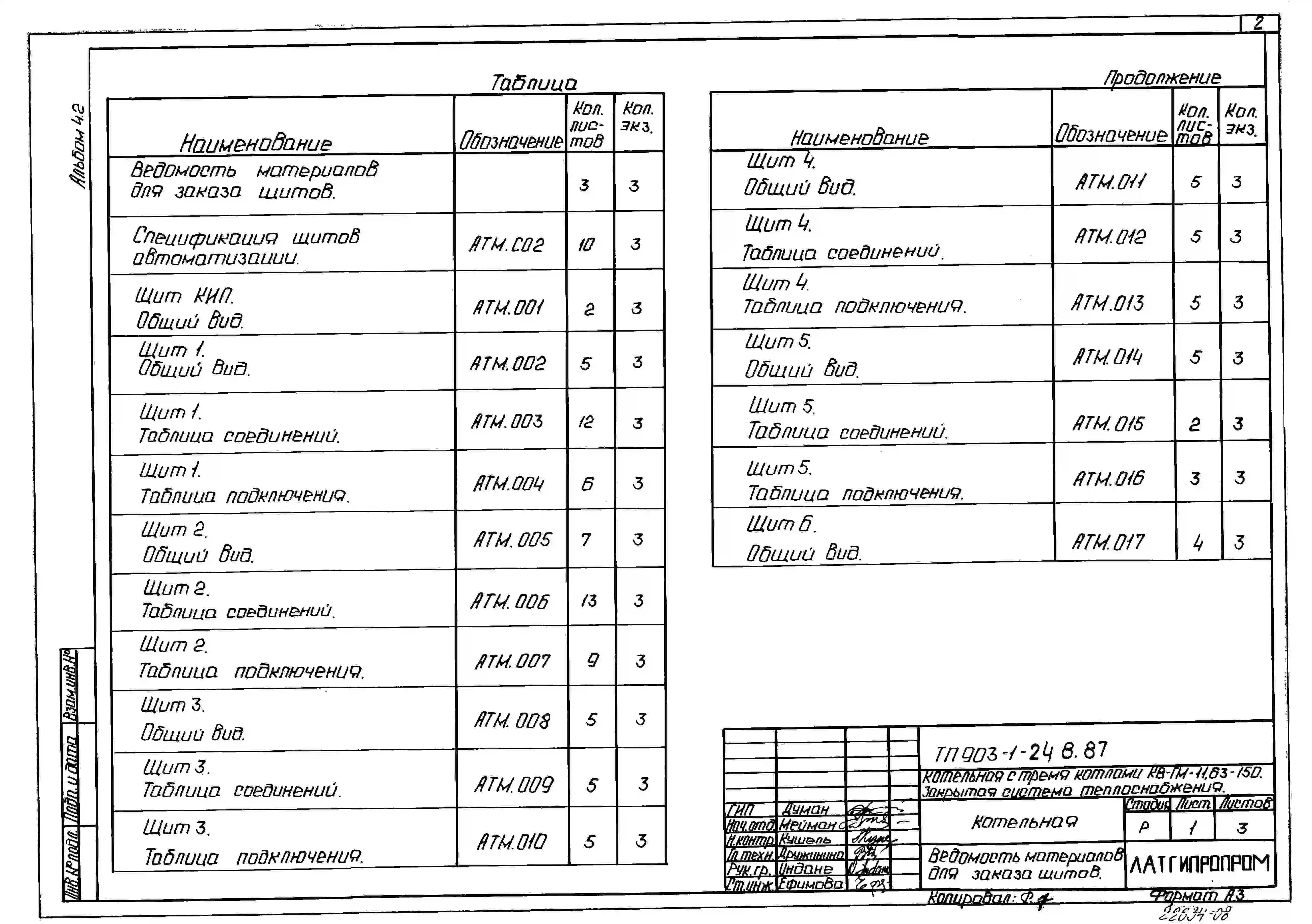 Типовой проект 903-1-248.87 Котельная с 3 котлами КВ-ГМ-11.63-150. Закрытая система теплоснабжения. Топливо - газ и мазут.