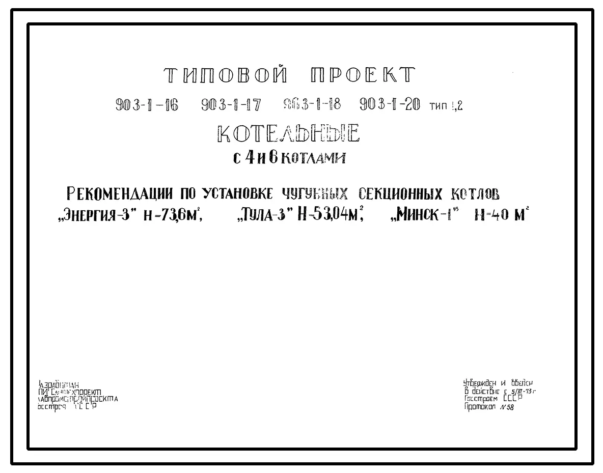 Типовой проект 903-1-18 тип 1 Котельная с 4 котлами «Энергия-6» поверхностью нагрева по 54,4 м2.