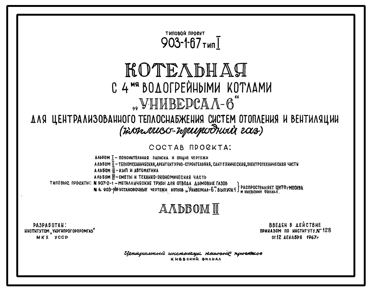 Типовой проект 903-1-67 Котельная с 4 паровыми котлами «Универсал -6» для централизованного пароснабжения. Тип 2