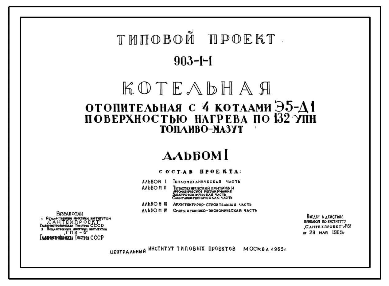 Типовой проект 903-1-1 Котельная отопительная с 4 водогрейными котлами Э5-Д1.