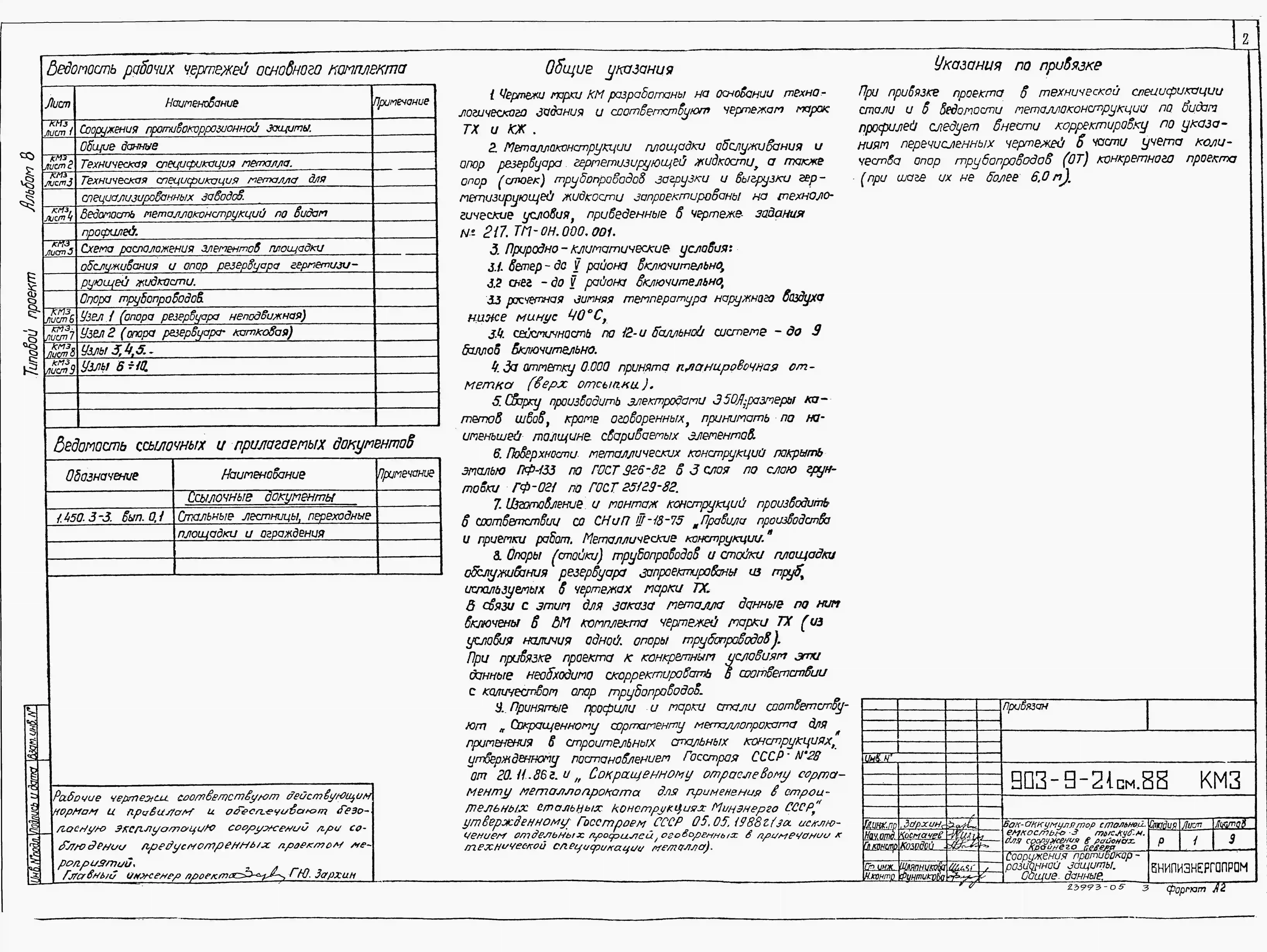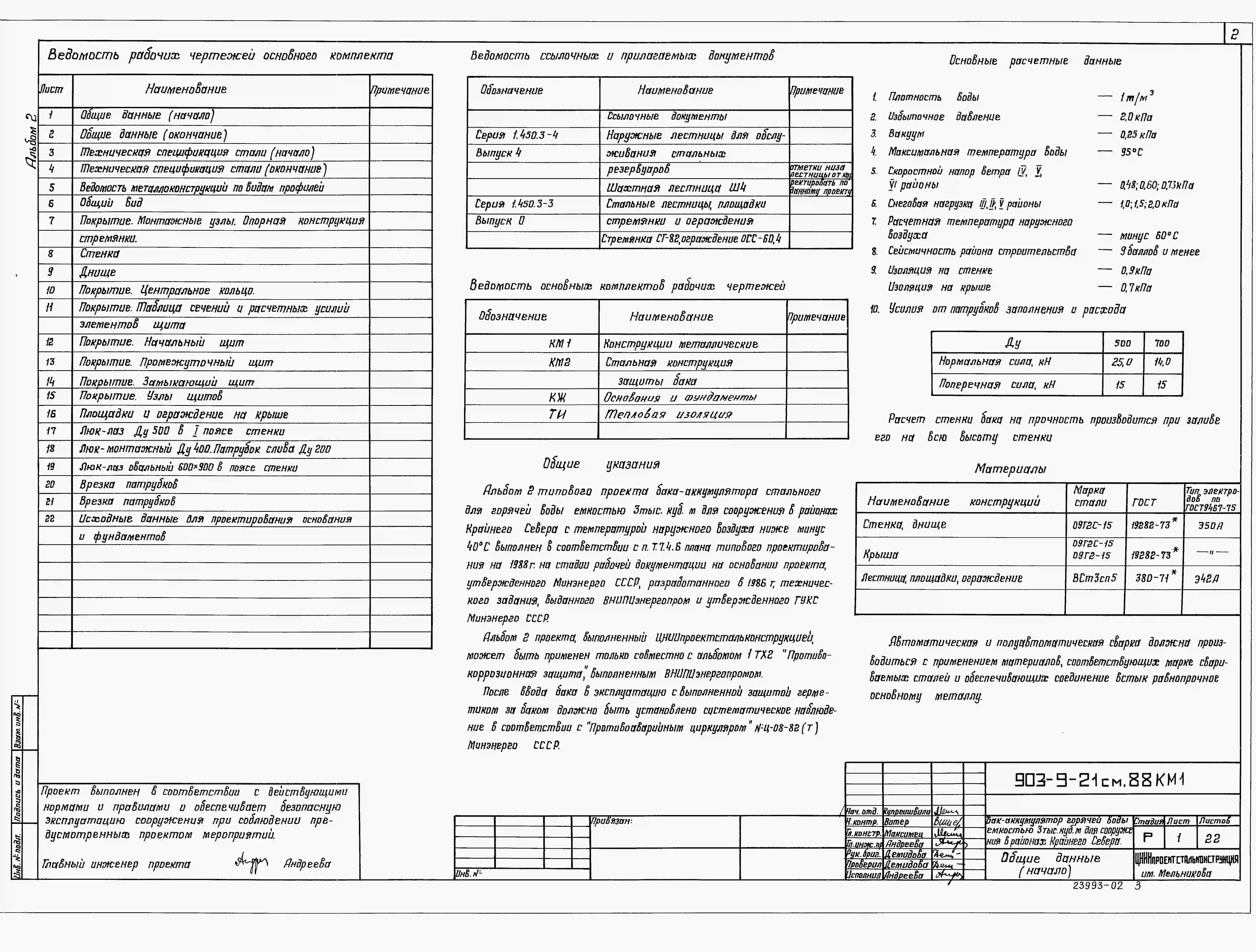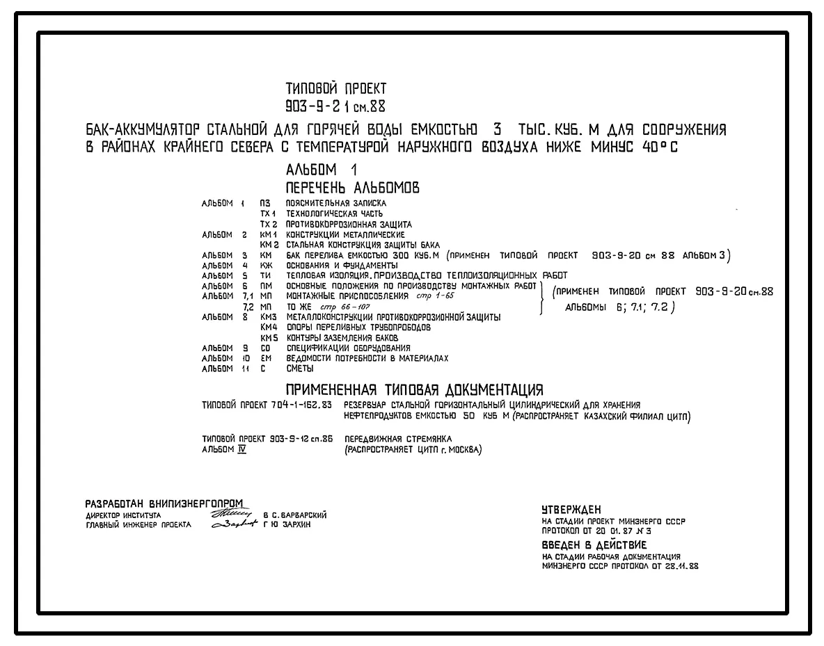 Типовой проект 903-9-21см.88 Бак-аккумулятор стальной для горячей воды емкостью 3 тыс. куб.м для сооружения в районах Крайнего Севера (с температурой наружного воздуха ниже -40 °С). Сейсмичность 9 баллов. Грунты вечномерзлые