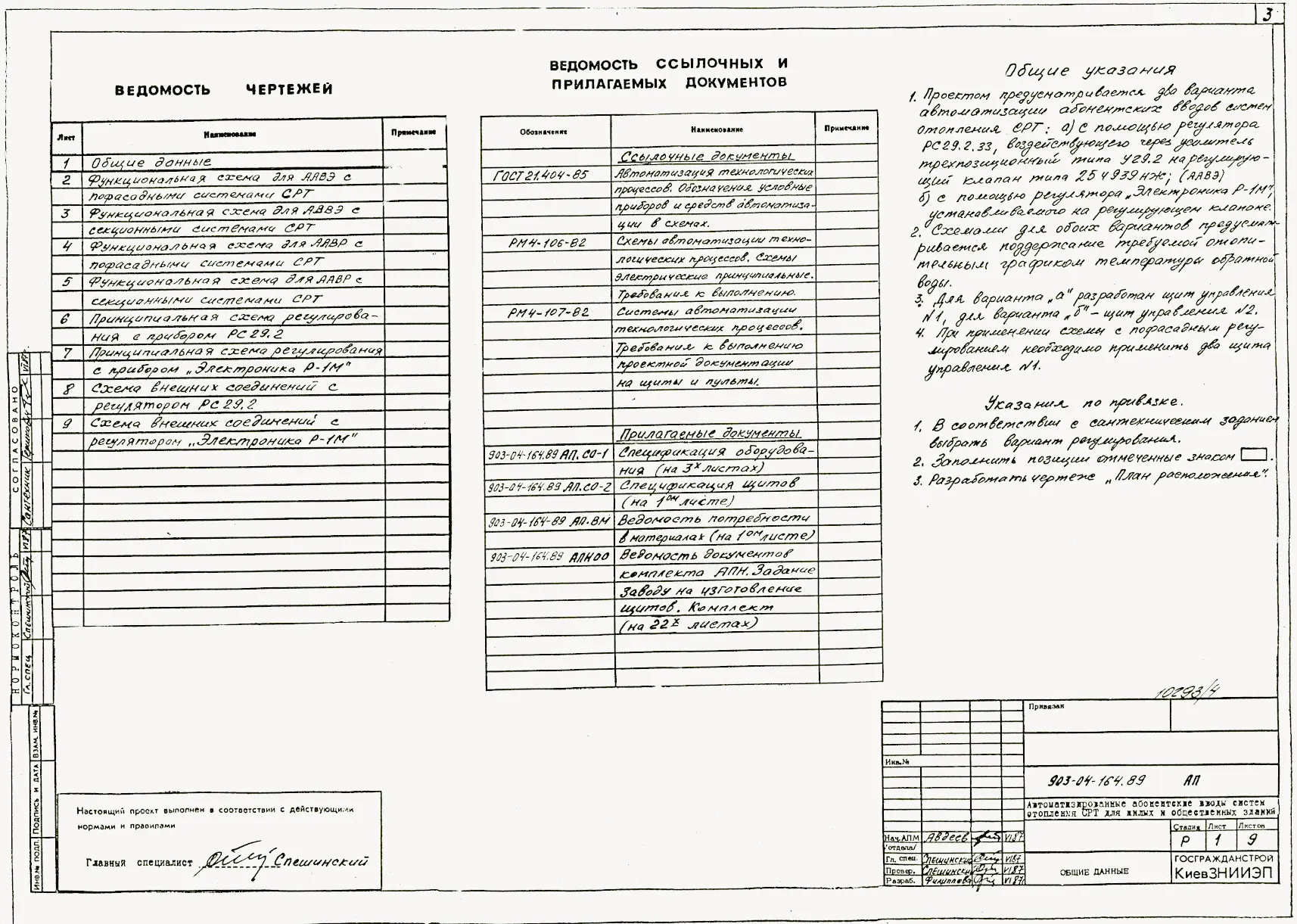 Типовой проект 903-04-164.89 Автоматизированные абонентские вводы систем отопления СРТ для жилых и общественных зданий
