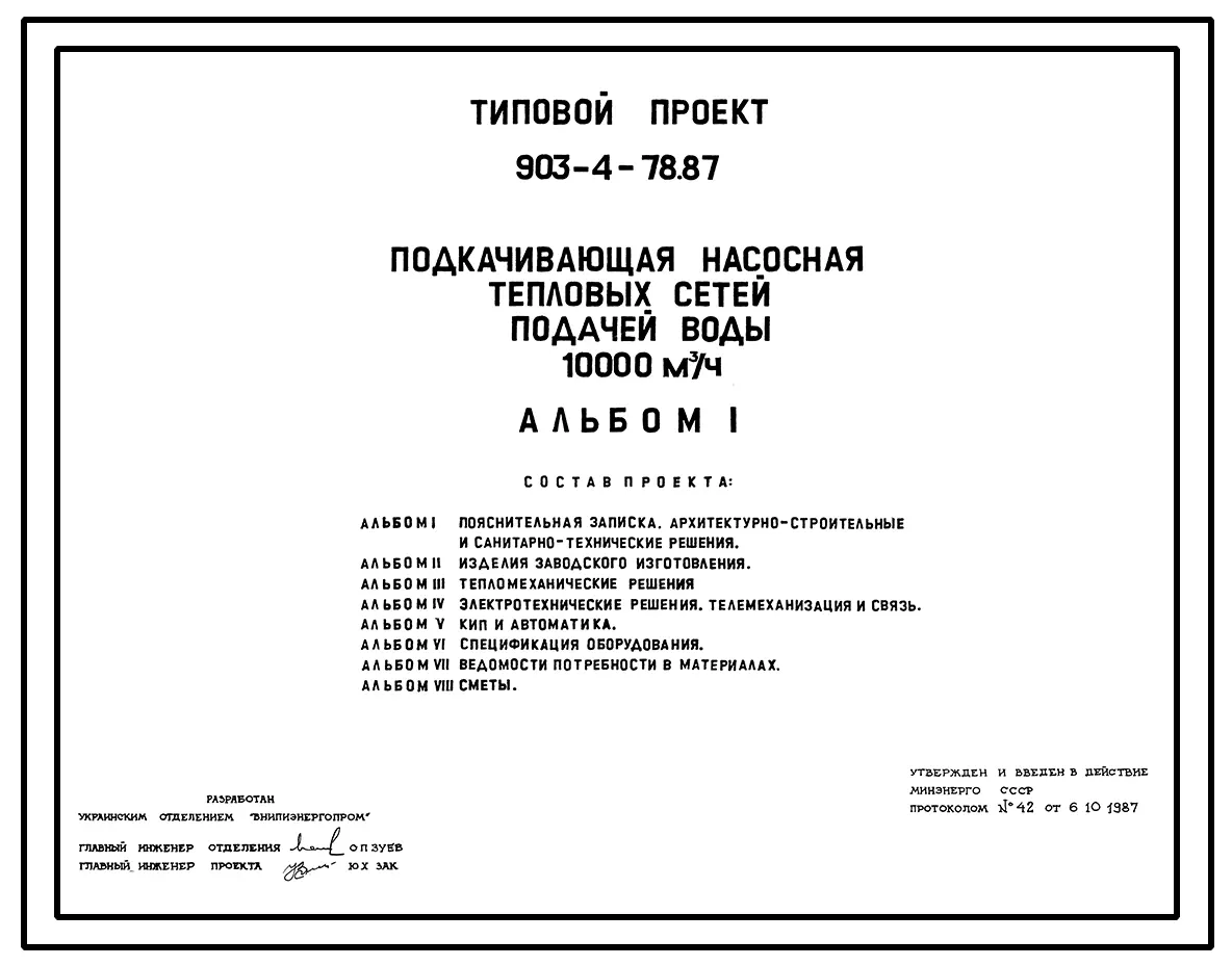 Типовой проект 903-4-78.87 Подкачивающая насосная тепловых сетей подачей воды 10 тыс. куб.м/ч
