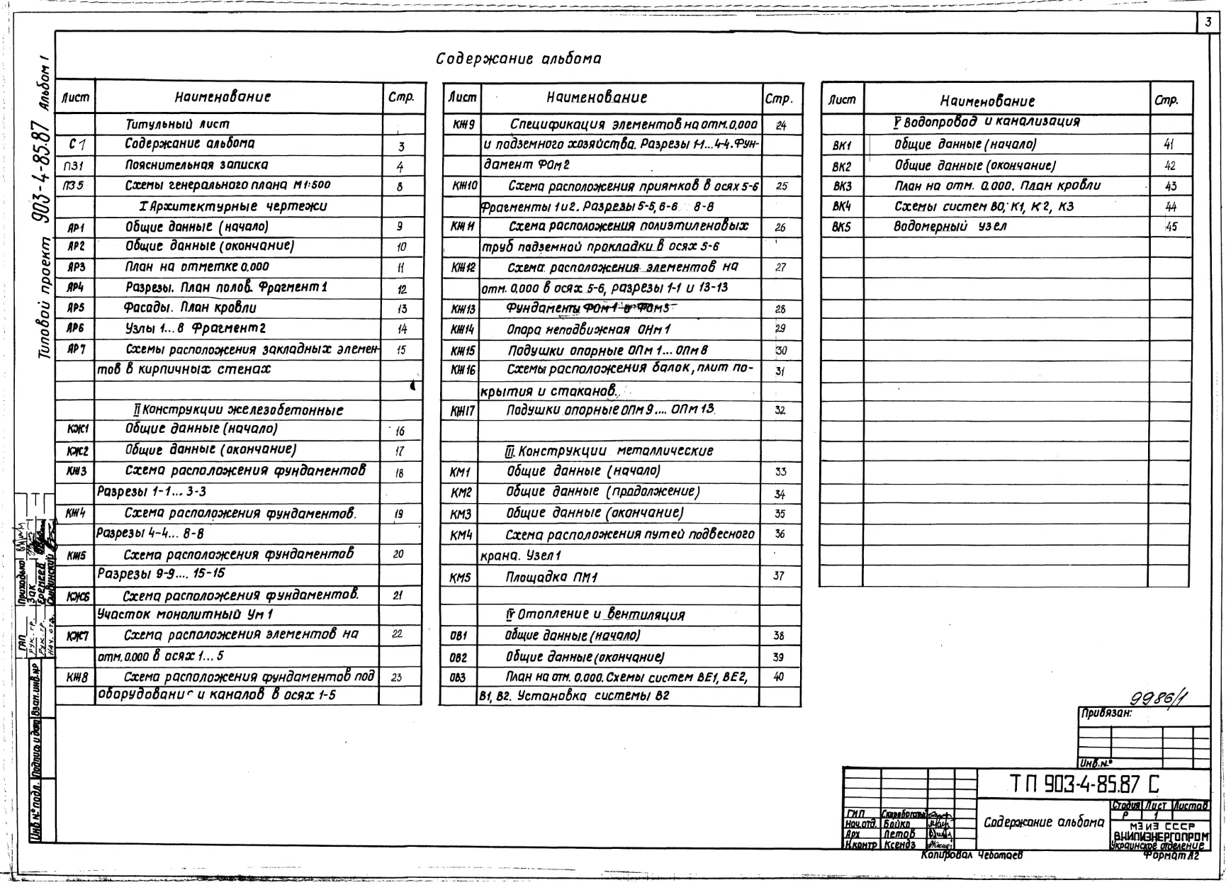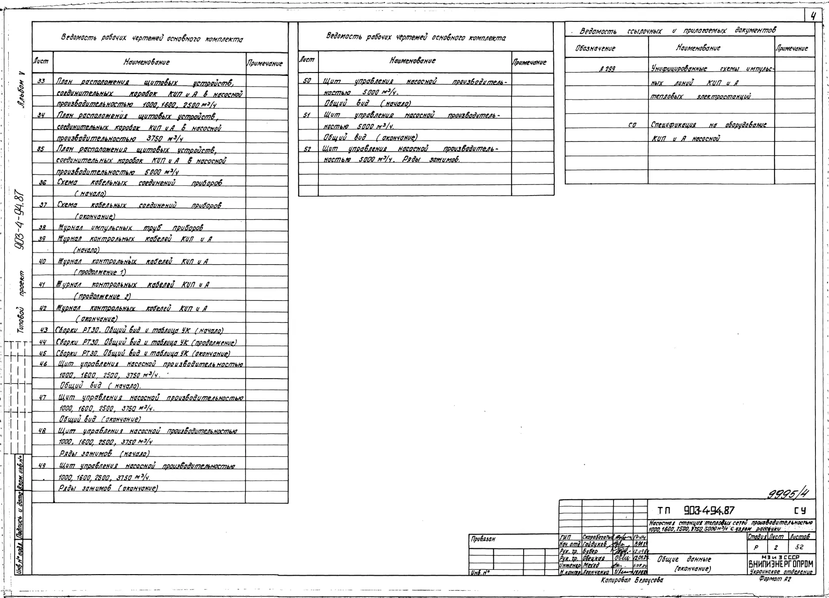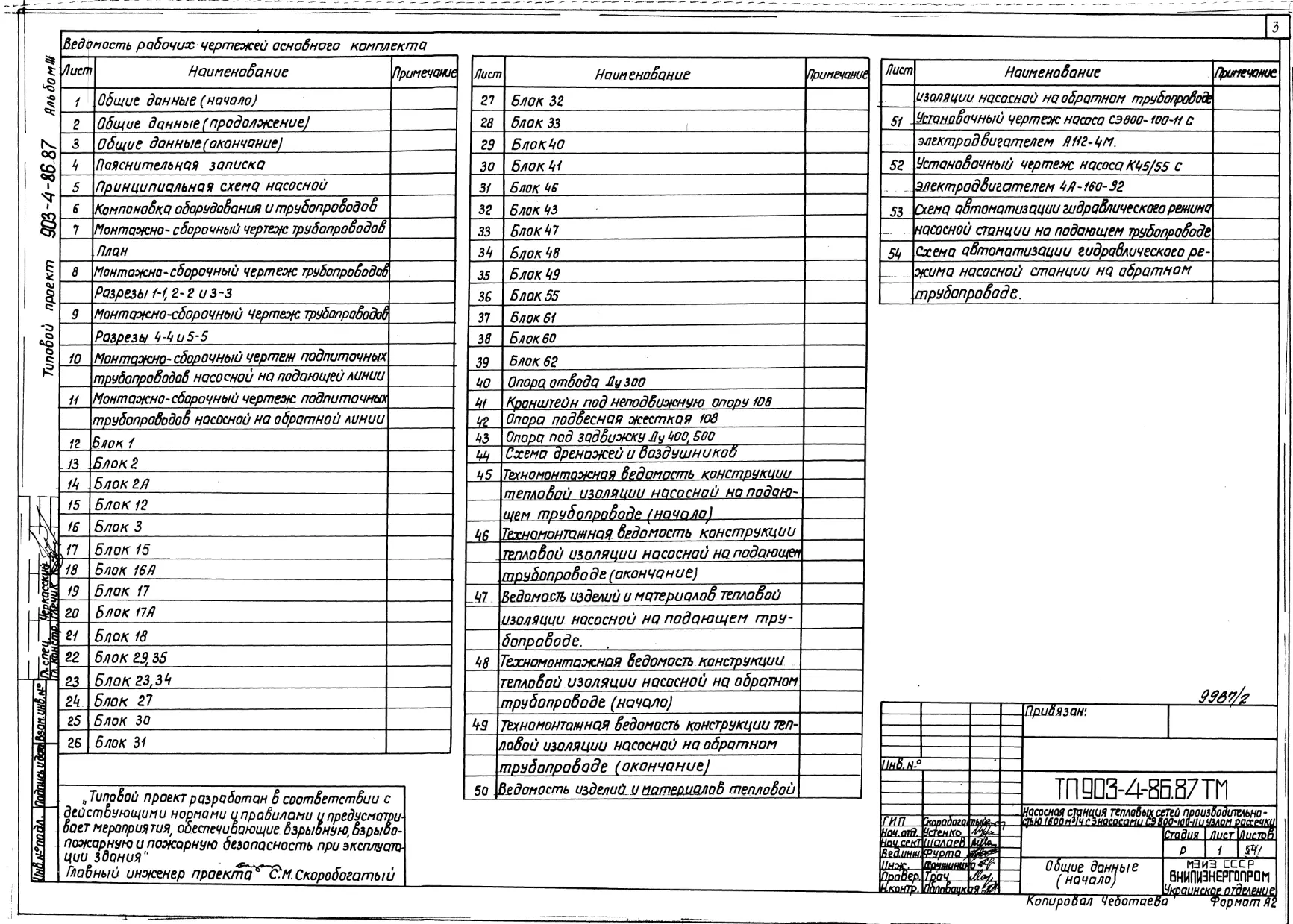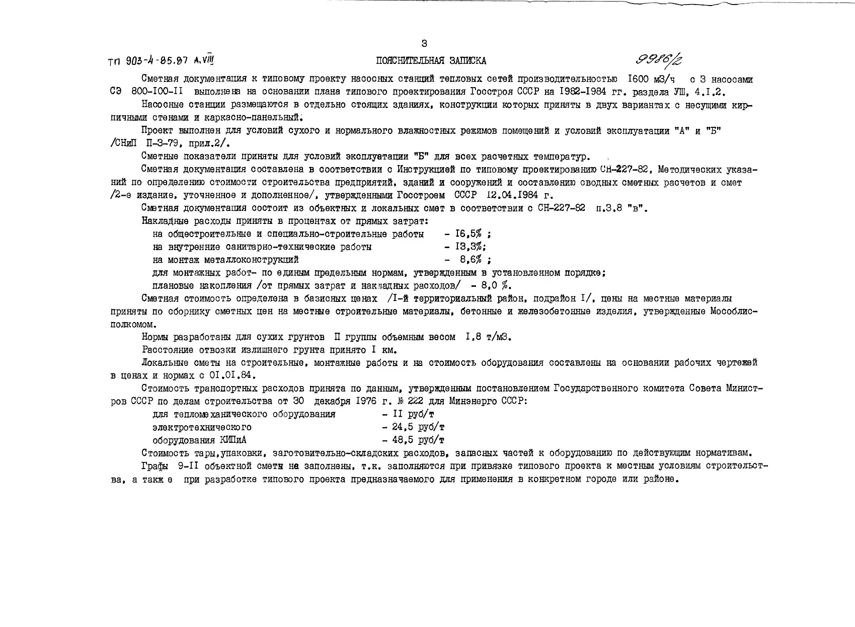 Типовой проект 903-4-85.87 Насосная станция тепловых сетей производительностью 1600 м3/ч с узлом рассечки (вариант с кирпичными стенами)