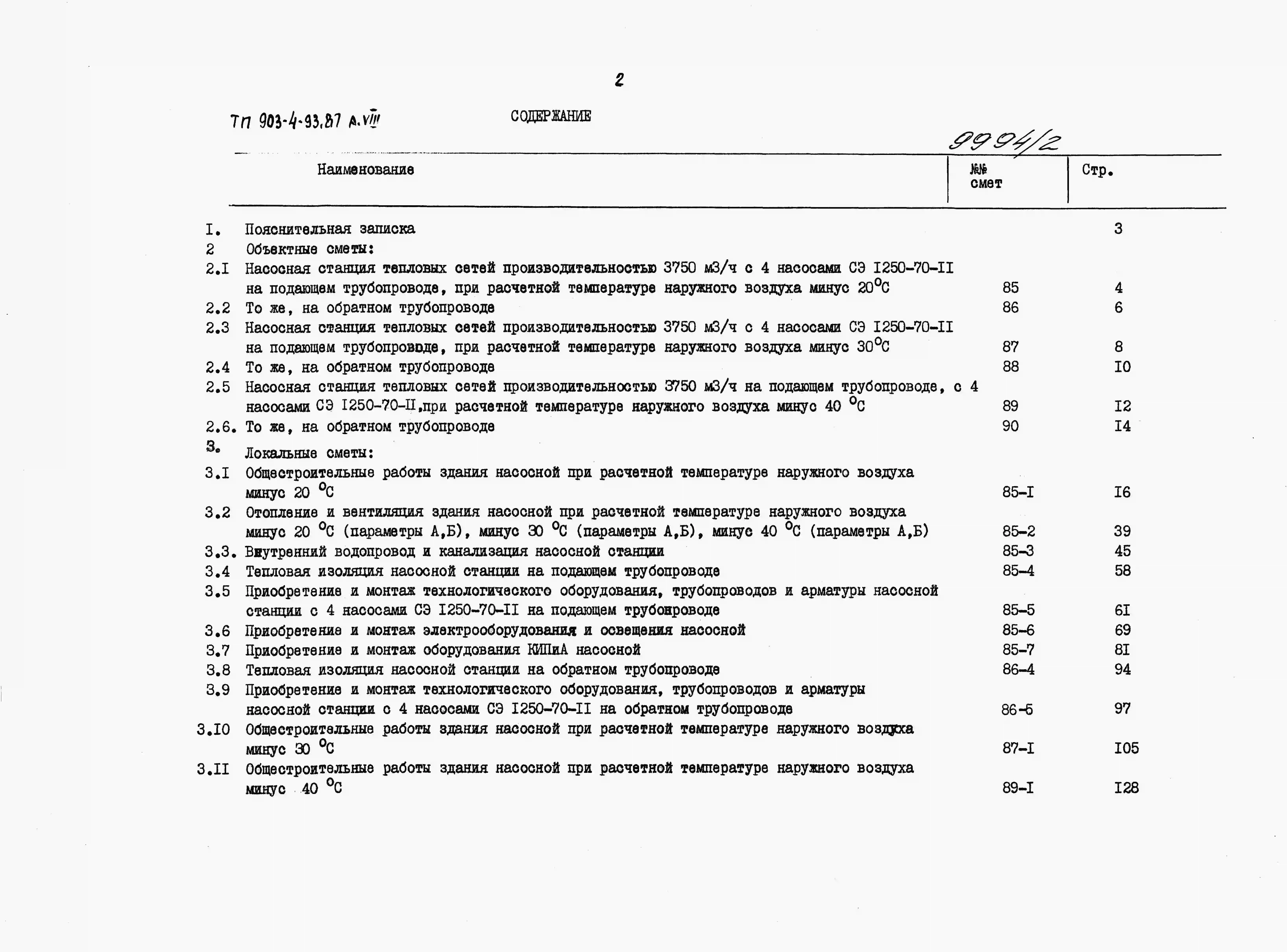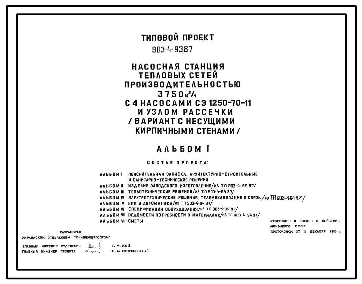 Типовой проект 903-4-93.87 Насосная станция тепловых сетей производительностью 3750 м3/ч с узлом рассечки (вариант с кирпичными стенами)
