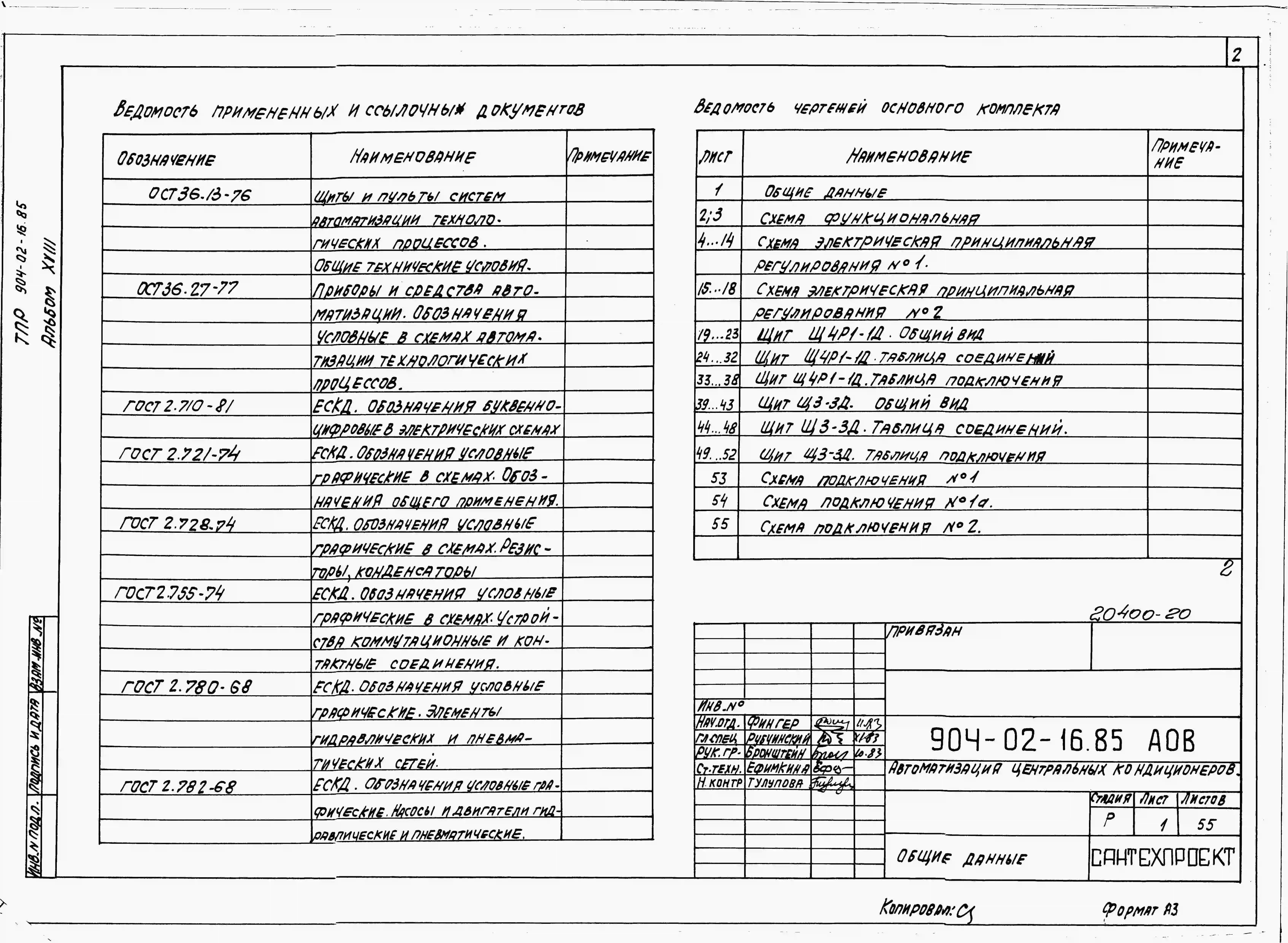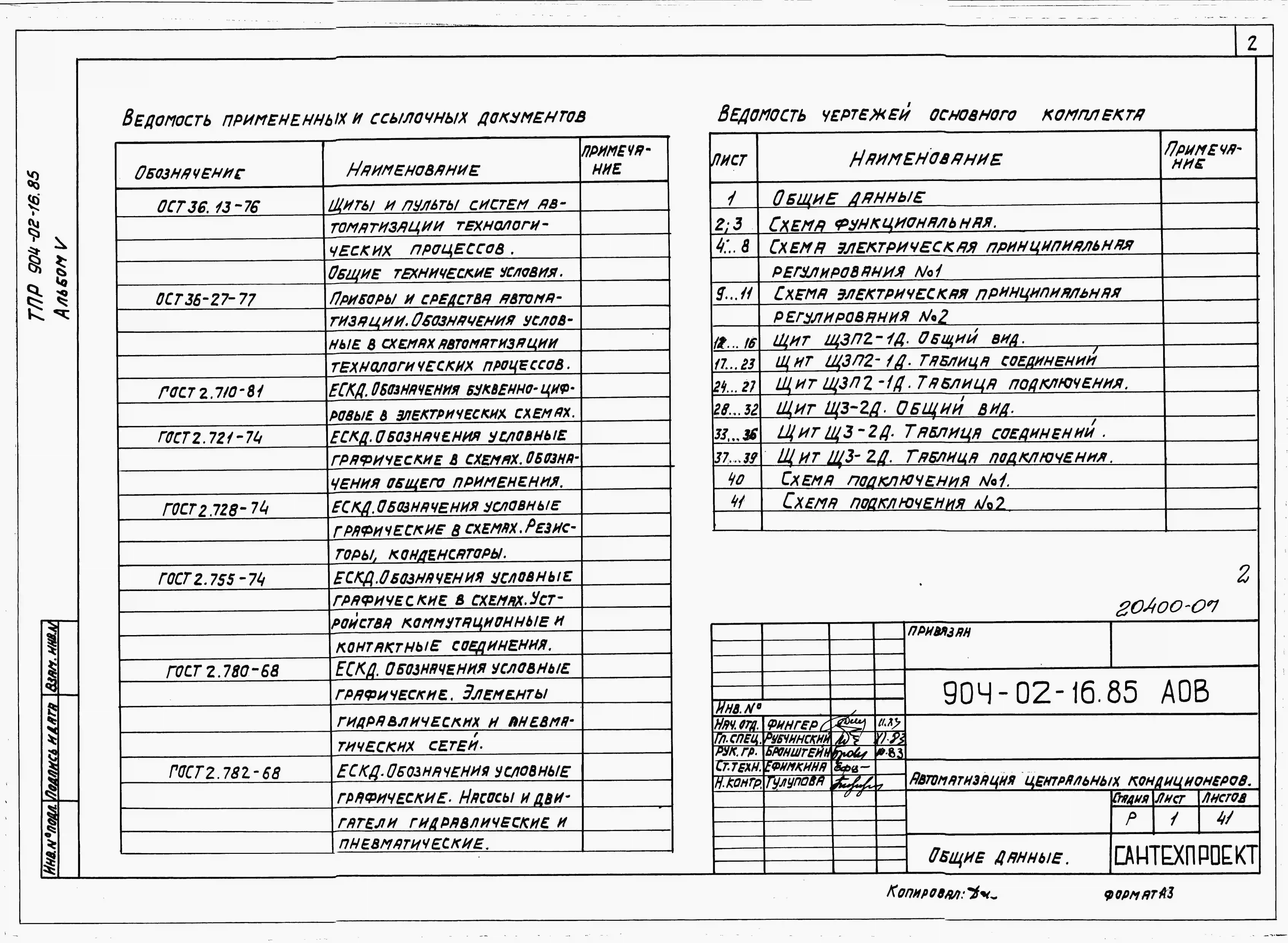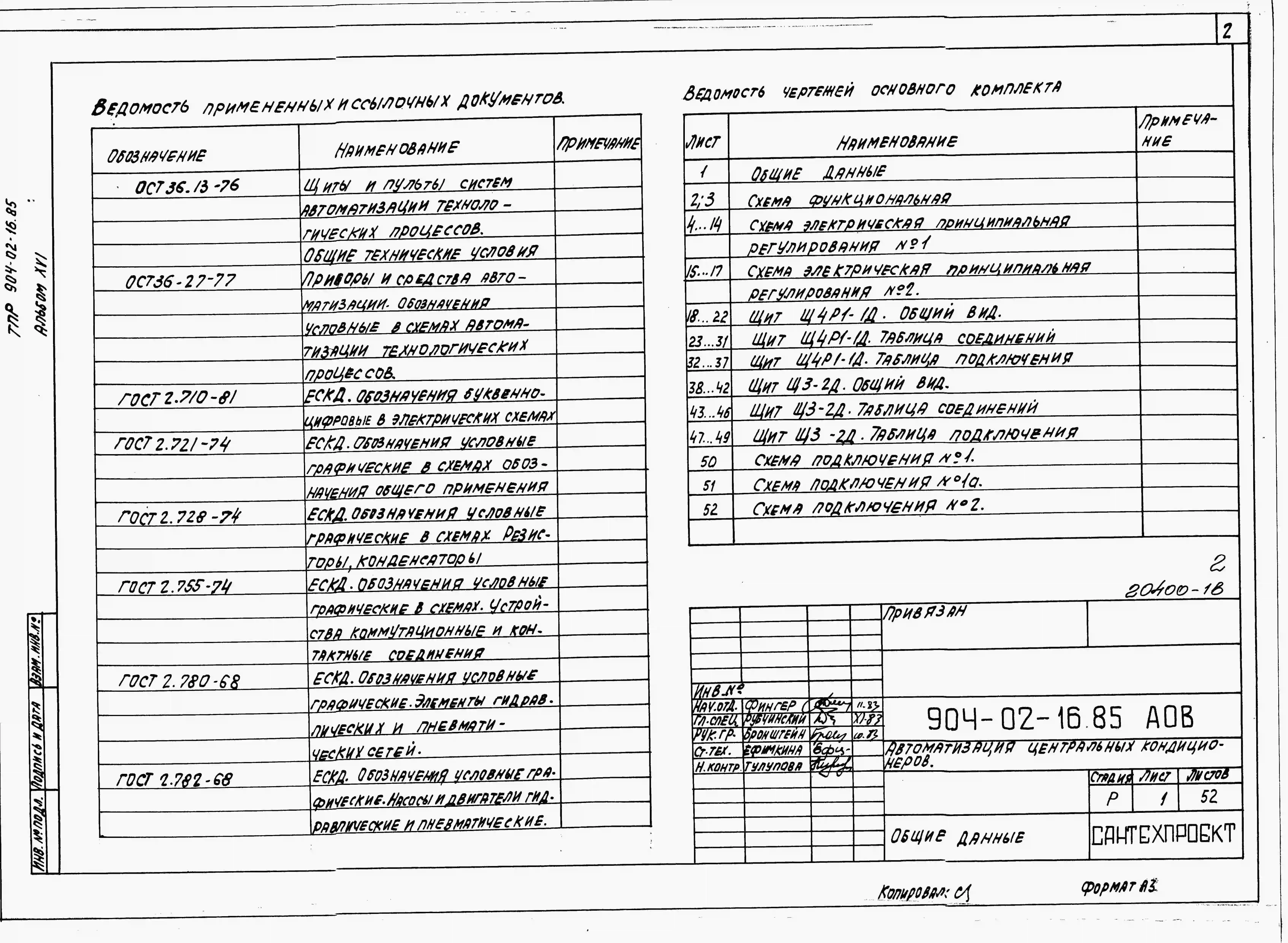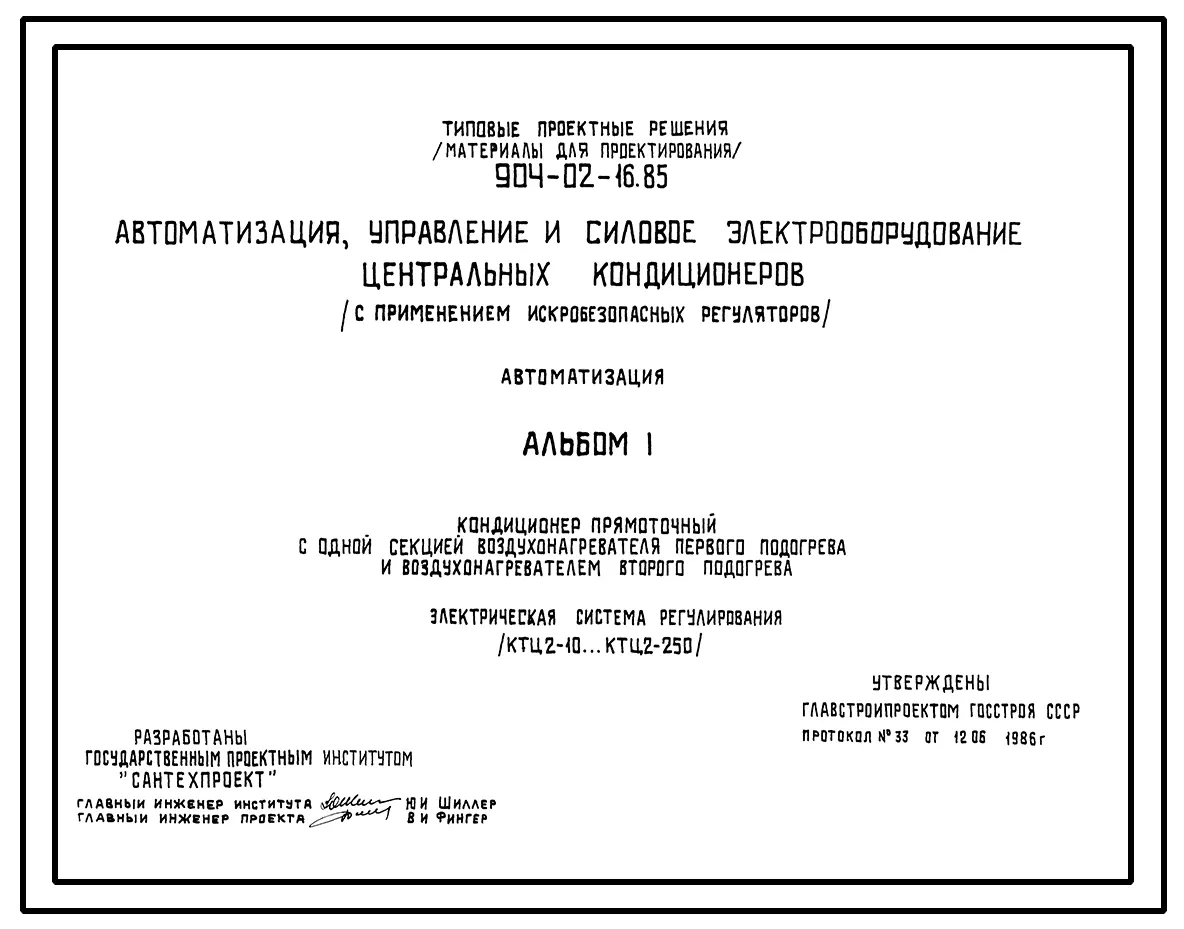 Типовой проект 904-02-16.85 Автоматизация, управление и силовое электрооборудование центральных кондиционеров (с применением искробезопасных регуляторов). Автоматизация