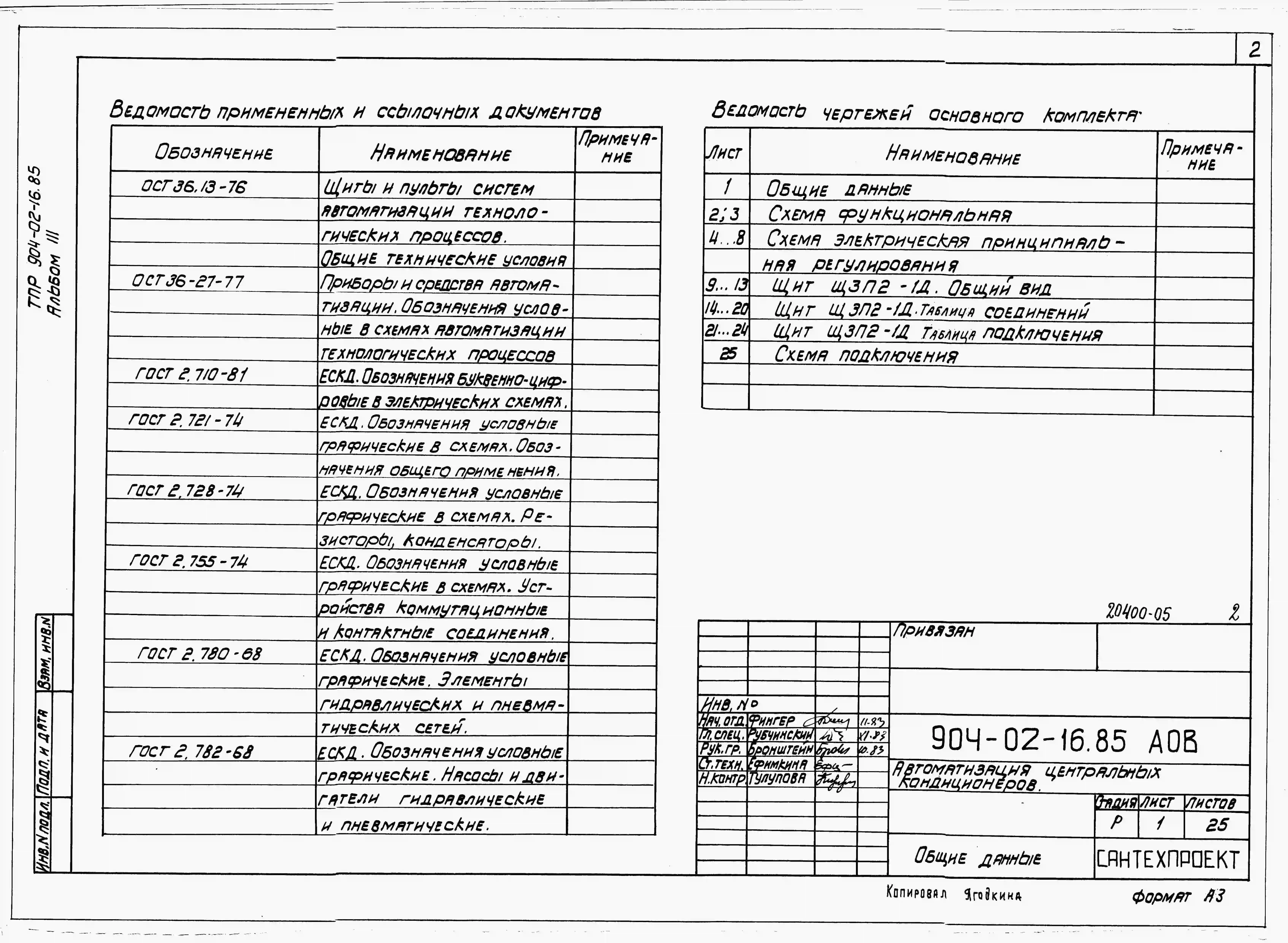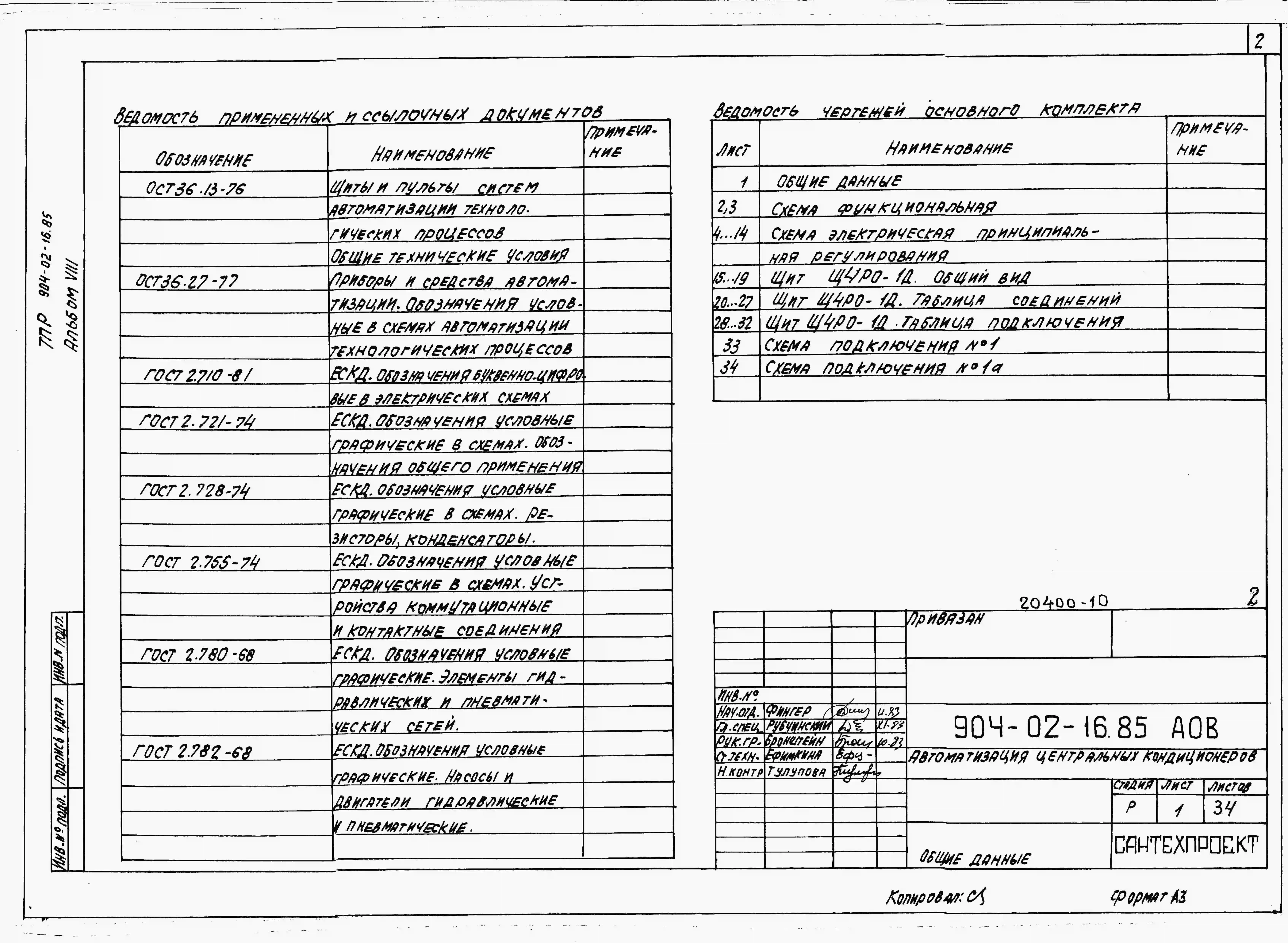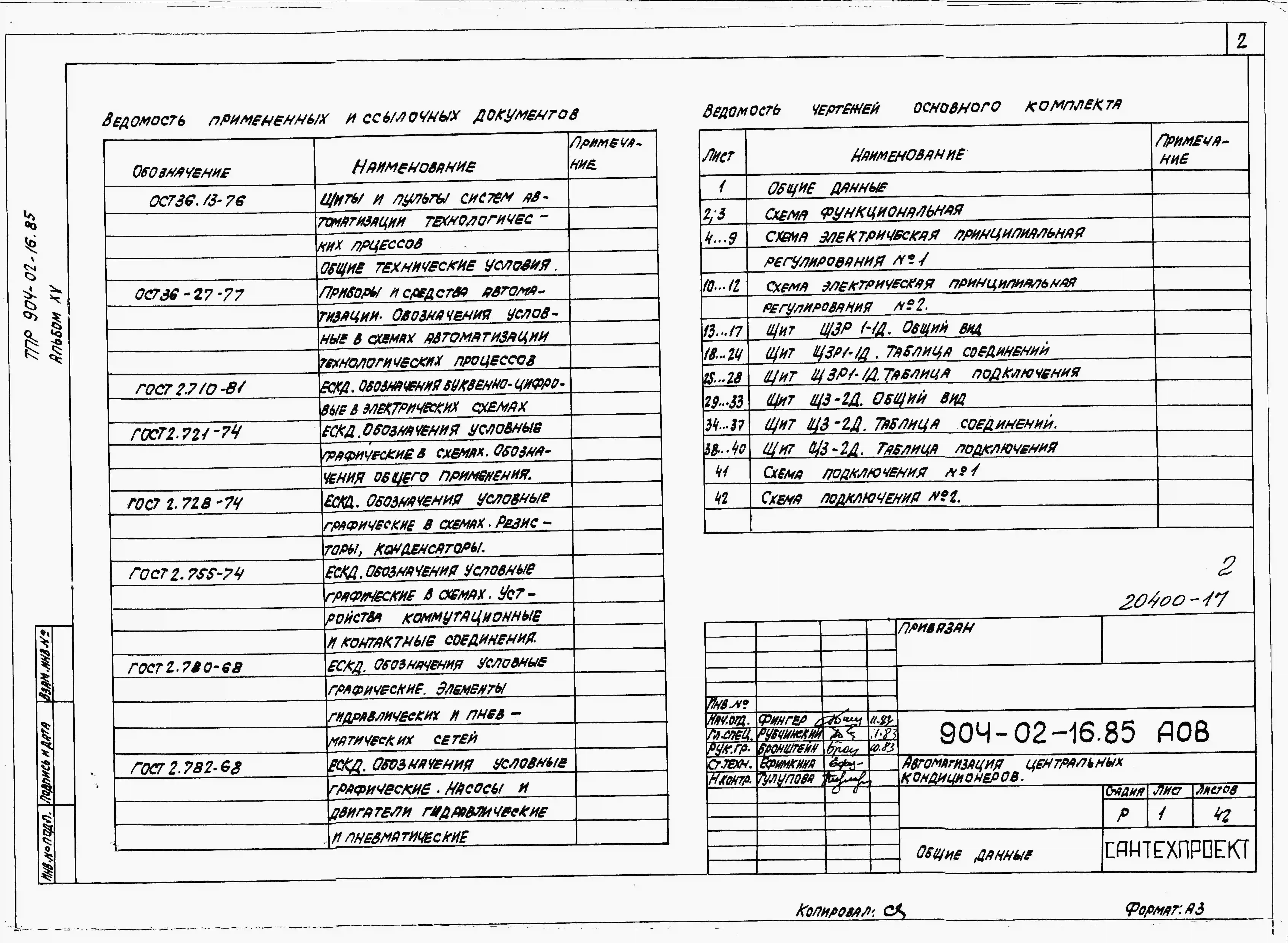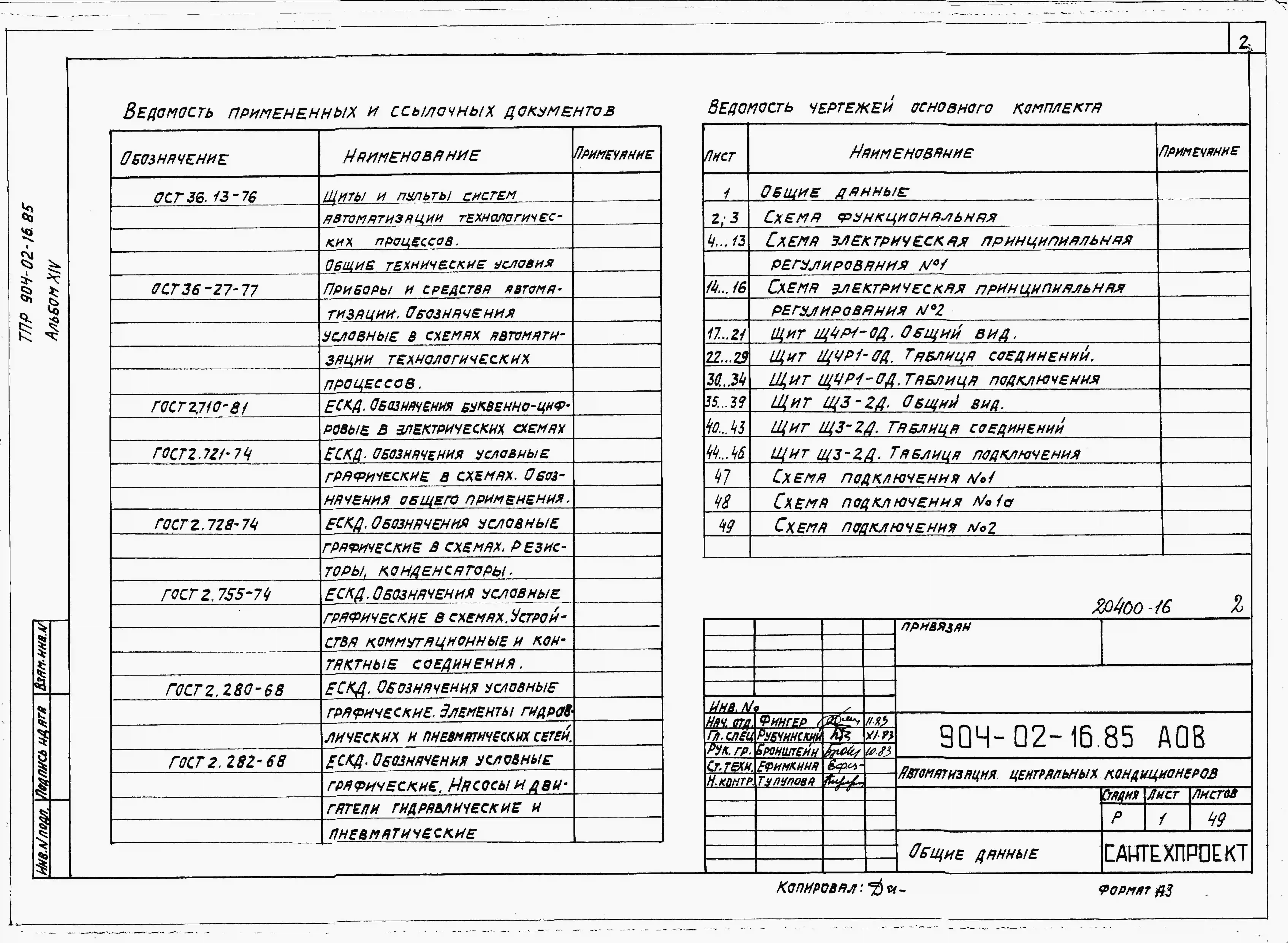 Типовой проект 904-02-16.85 Автоматизация, управление и силовое электрооборудование центральных кондиционеров (с применением искробезопасных регуляторов). Автоматизация
