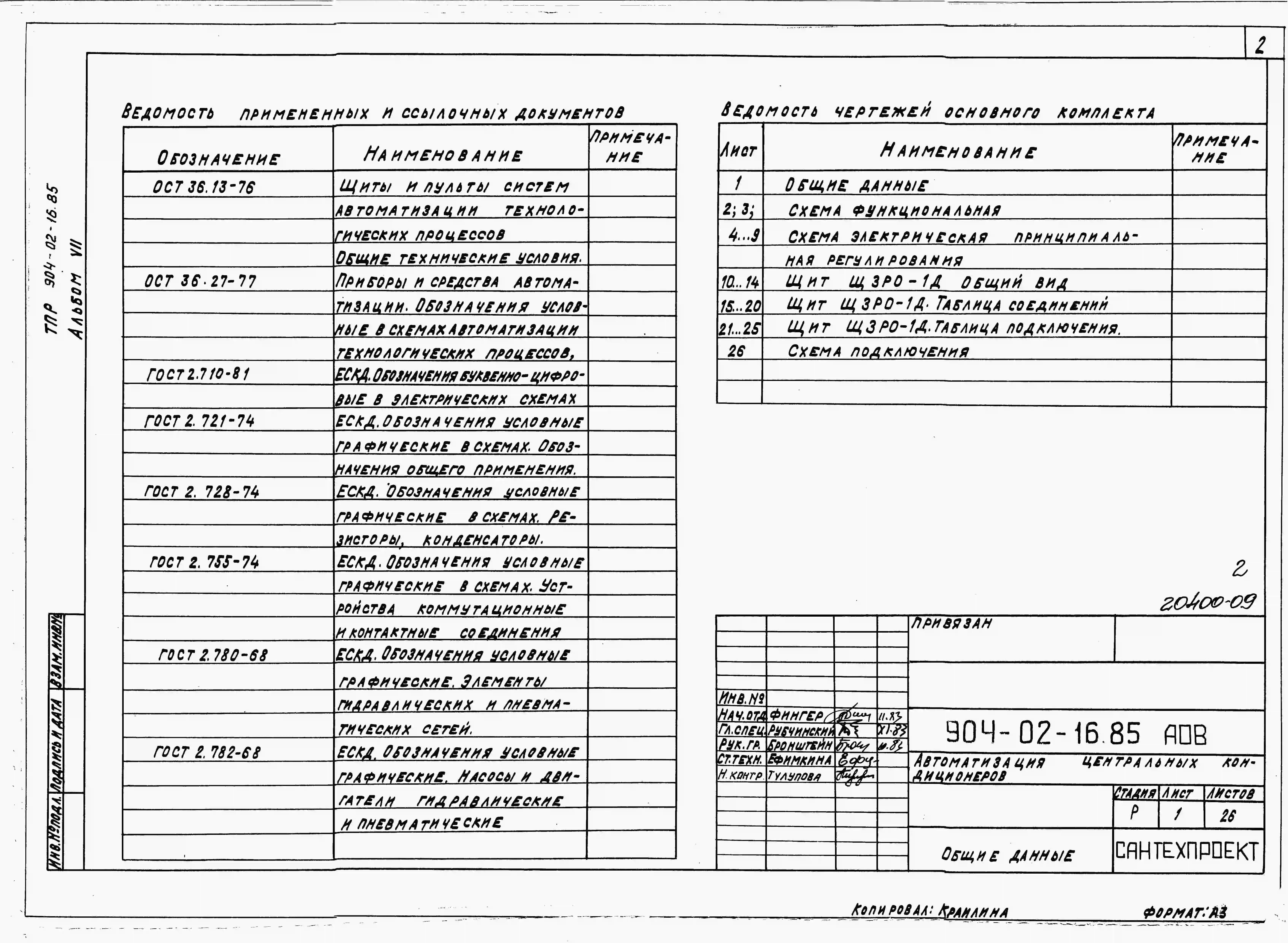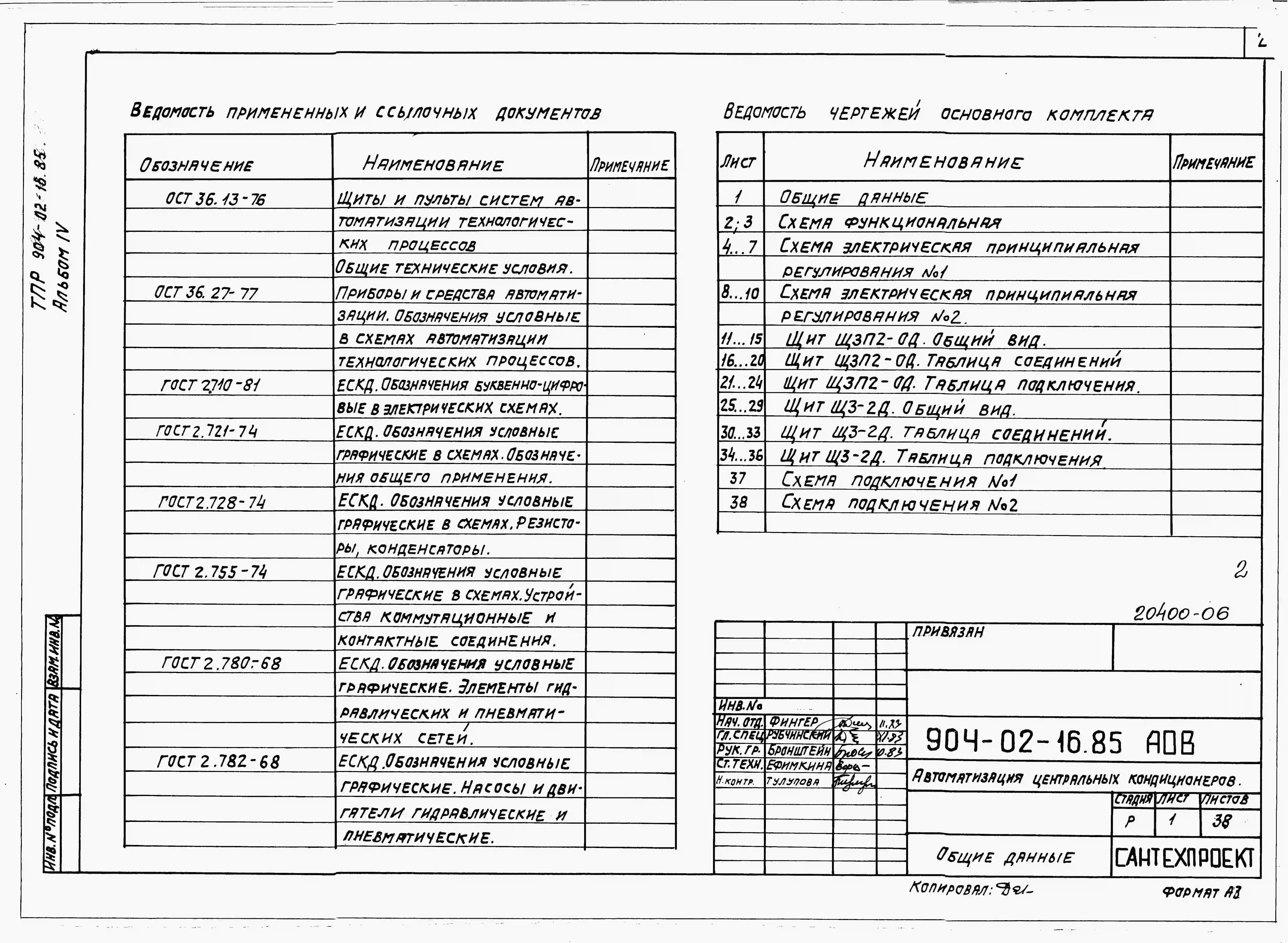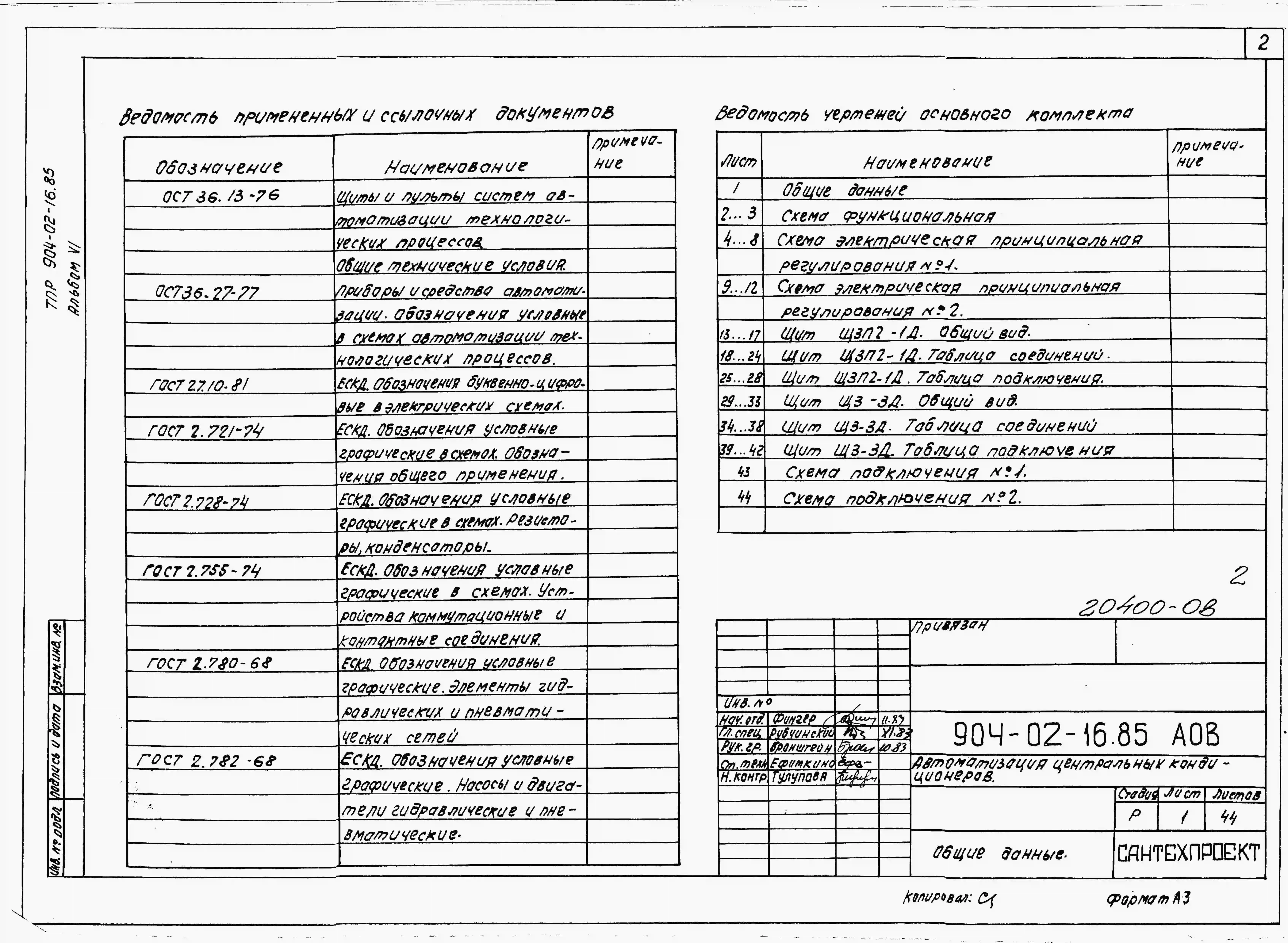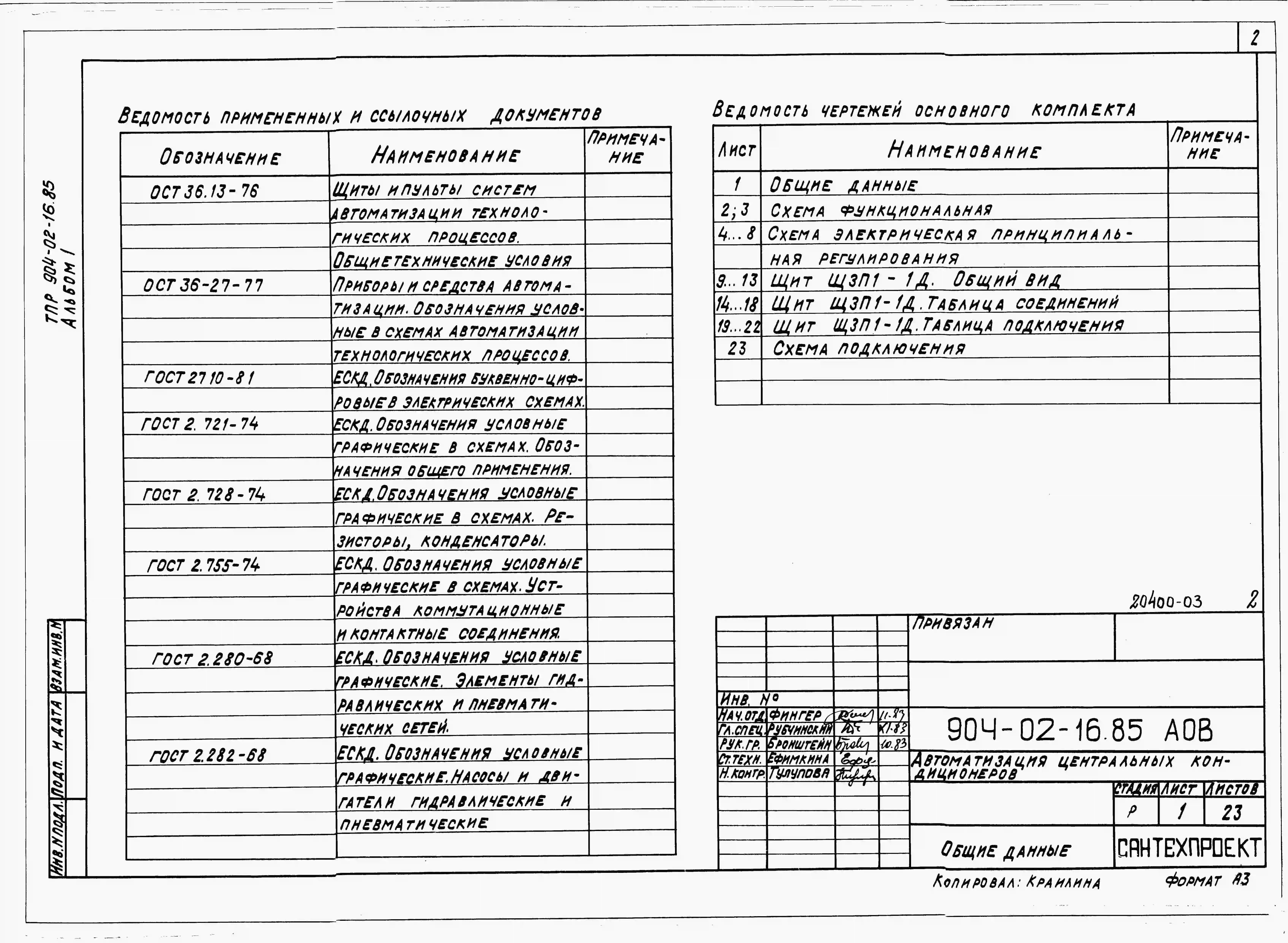 Типовой проект 904-02-16.85 Автоматизация, управление и силовое электрооборудование центральных кондиционеров (с применением искробезопасных регуляторов). Автоматизация