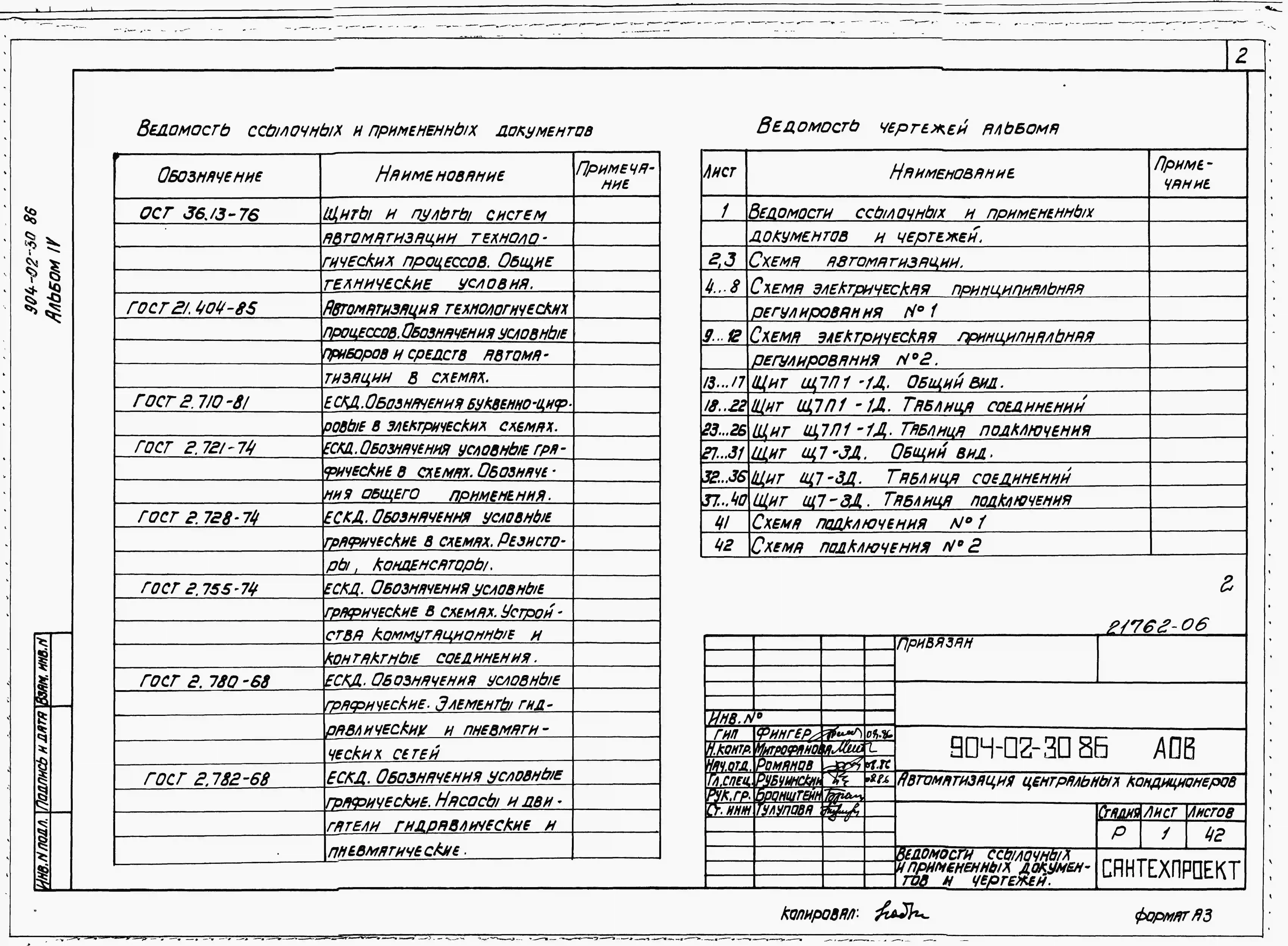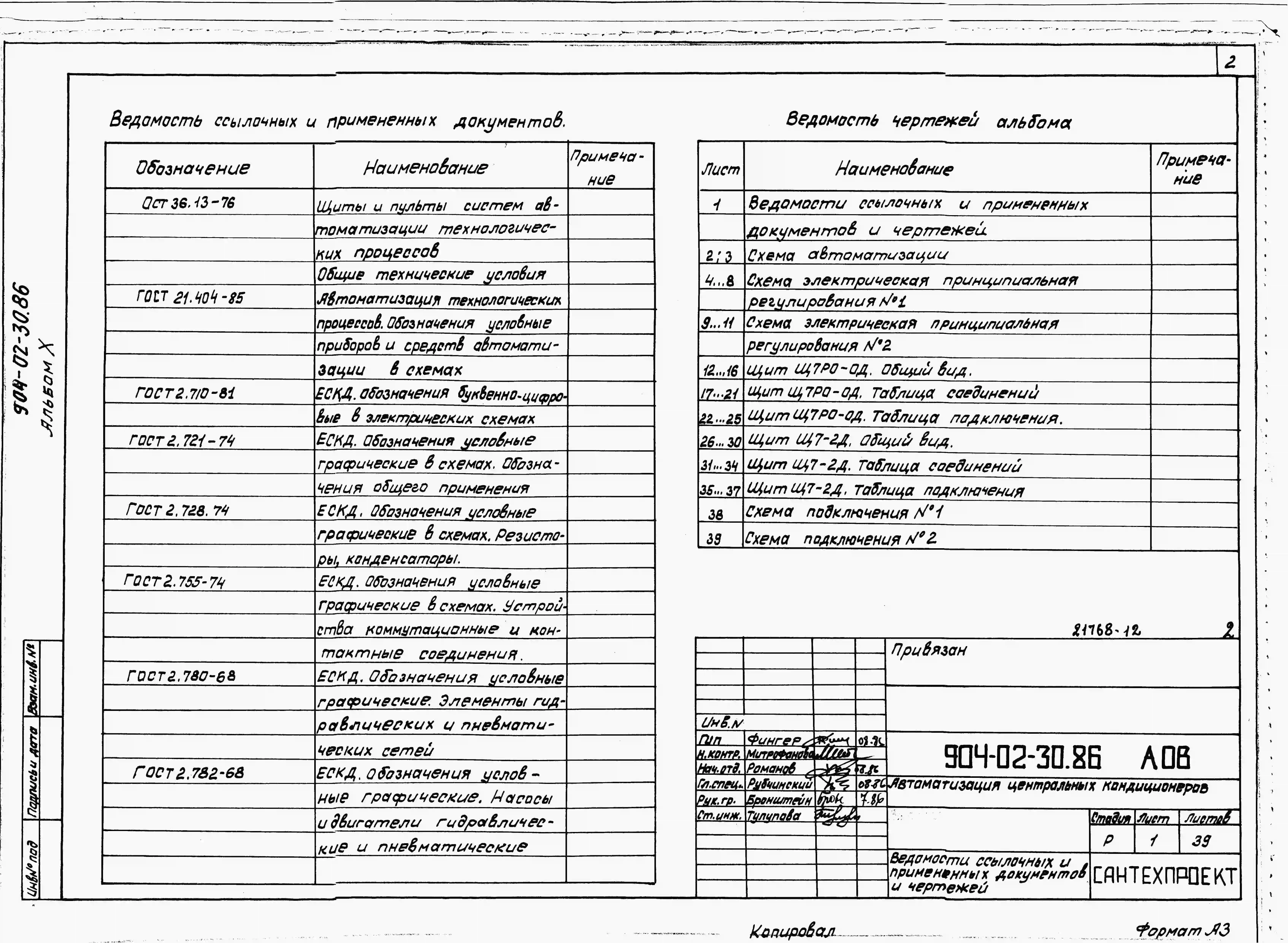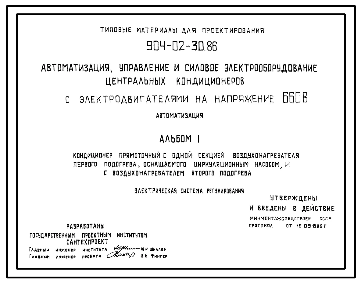 Типовой проект 904-02-30.86 Автоматизация, управление и силовое электрооборудование центральных кондиционеров с электродвигателями на напряжение 660В. Автоматизация