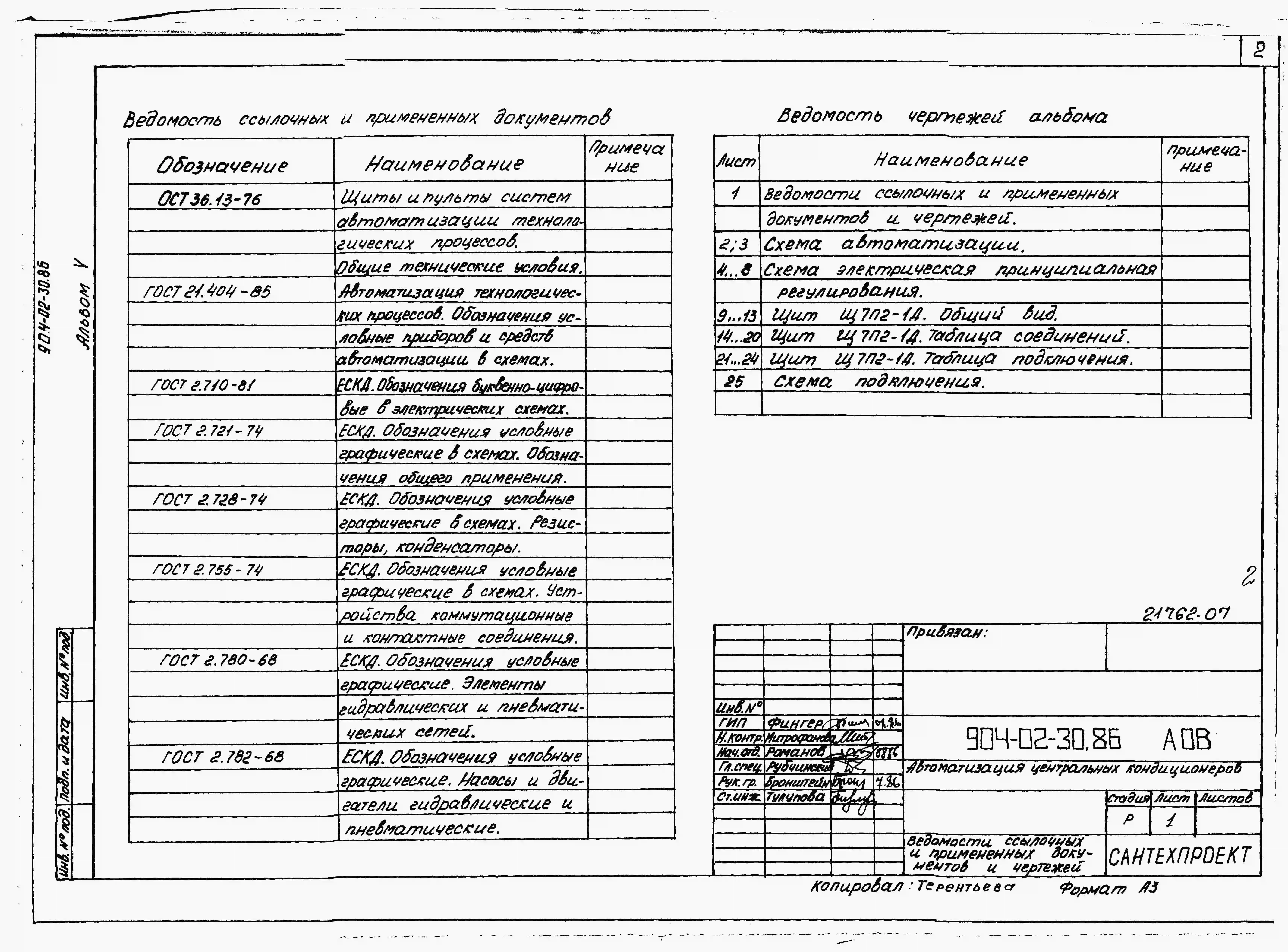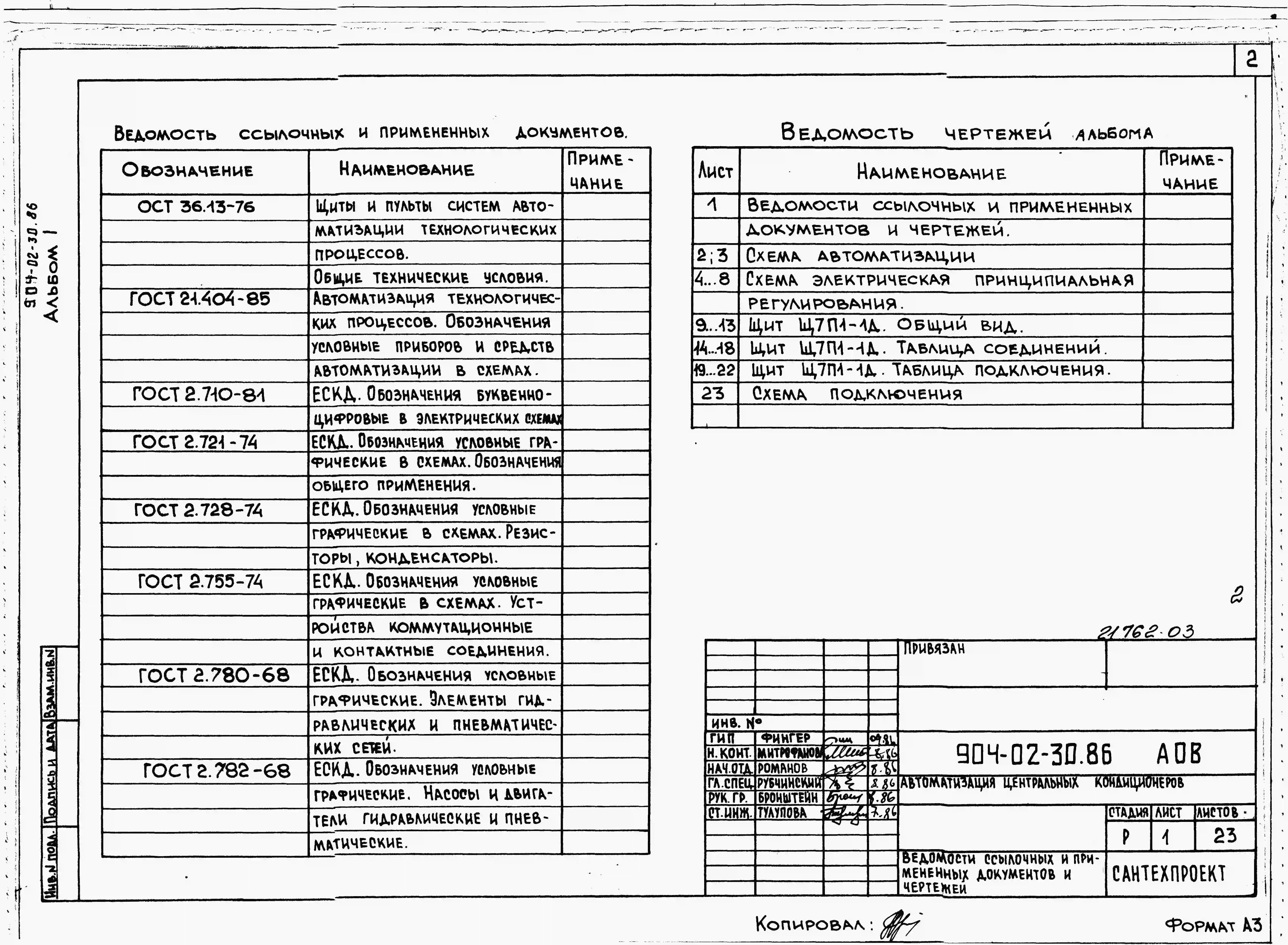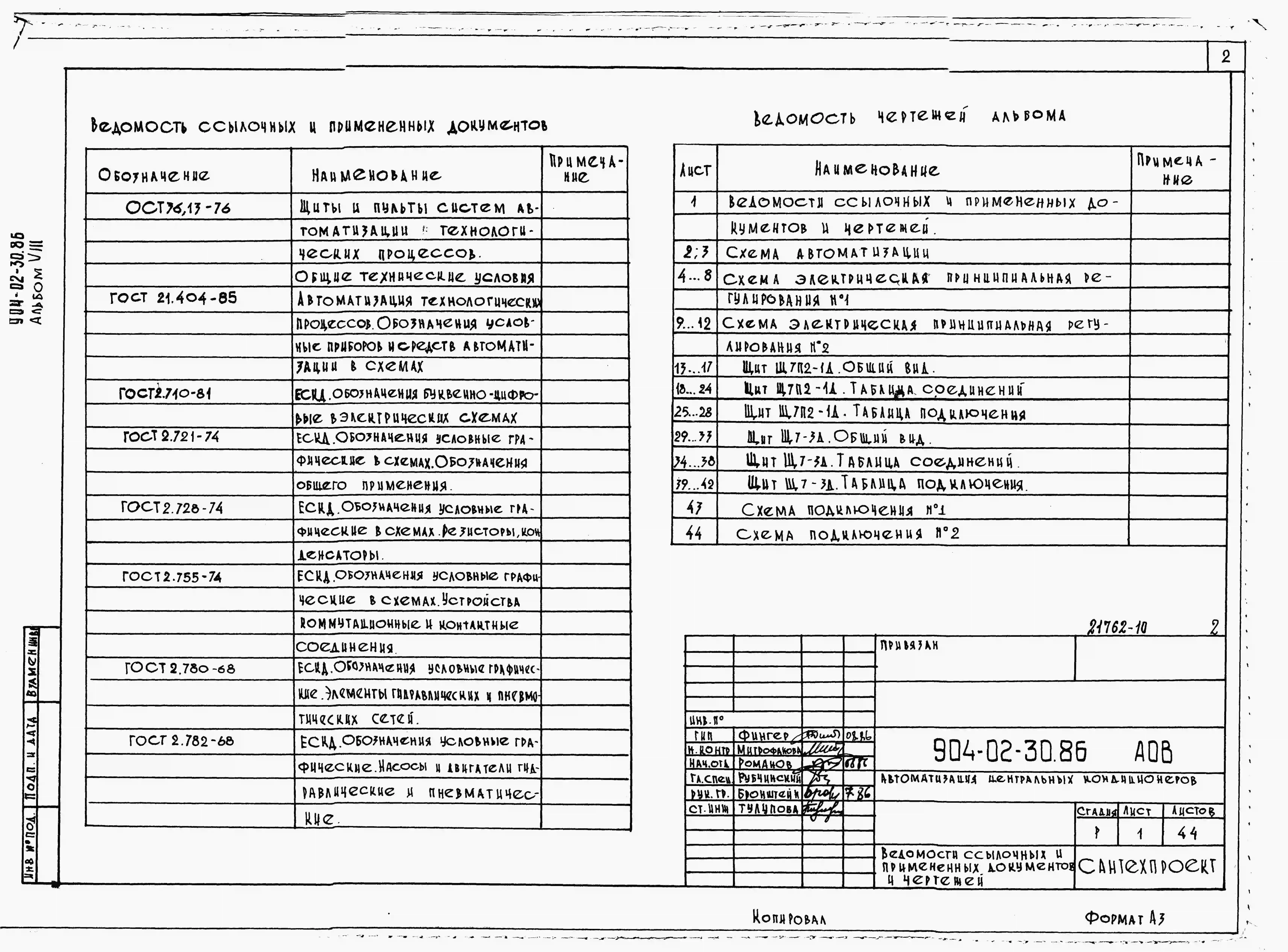 Типовой проект 904-02-30.86 Автоматизация, управление и силовое электрооборудование центральных кондиционеров с электродвигателями на напряжение 660В. Автоматизация
