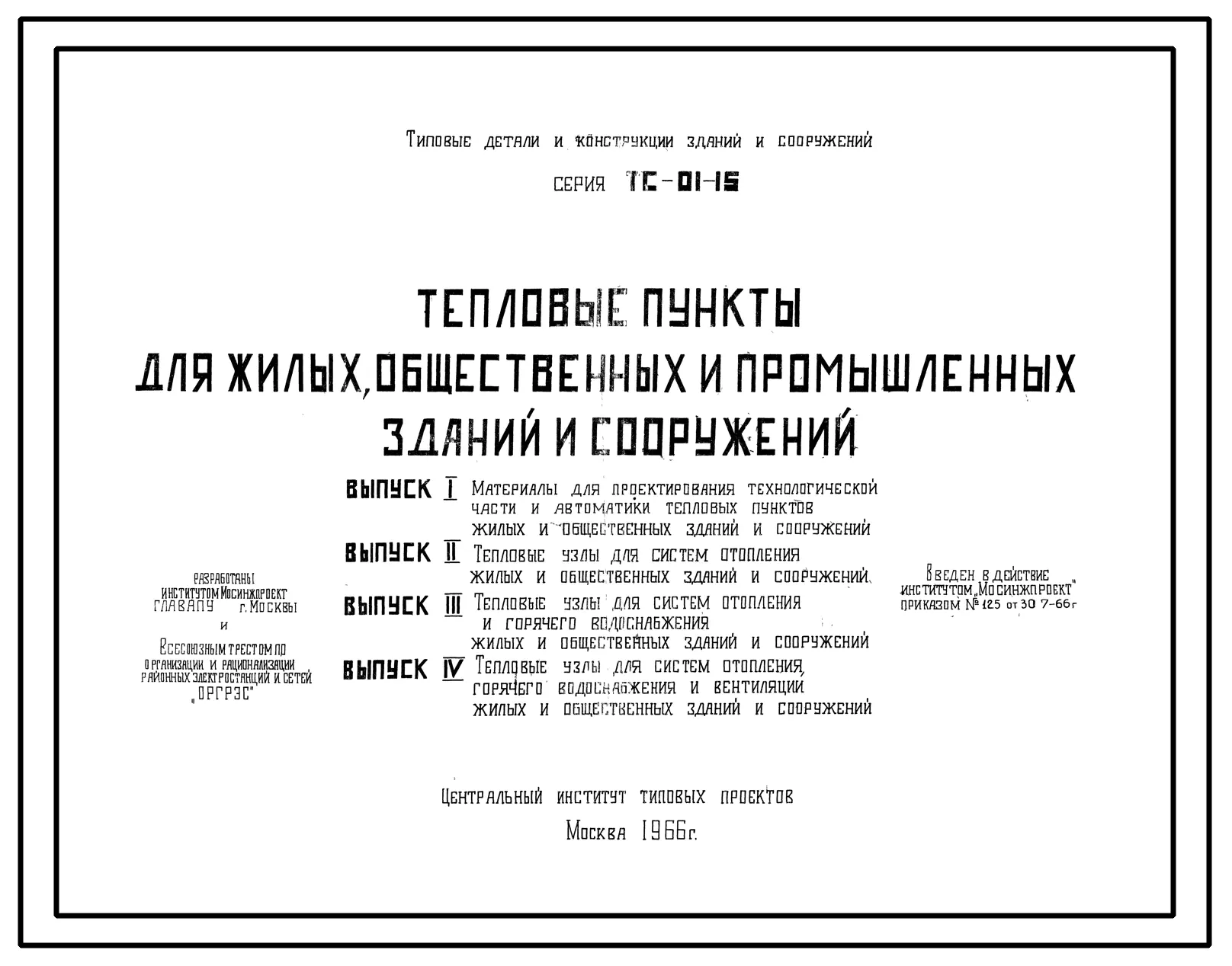 Типовой проект ТС-01-15 Тепловые пункты для жилых, общественных и промышленных зданий и сооружений
