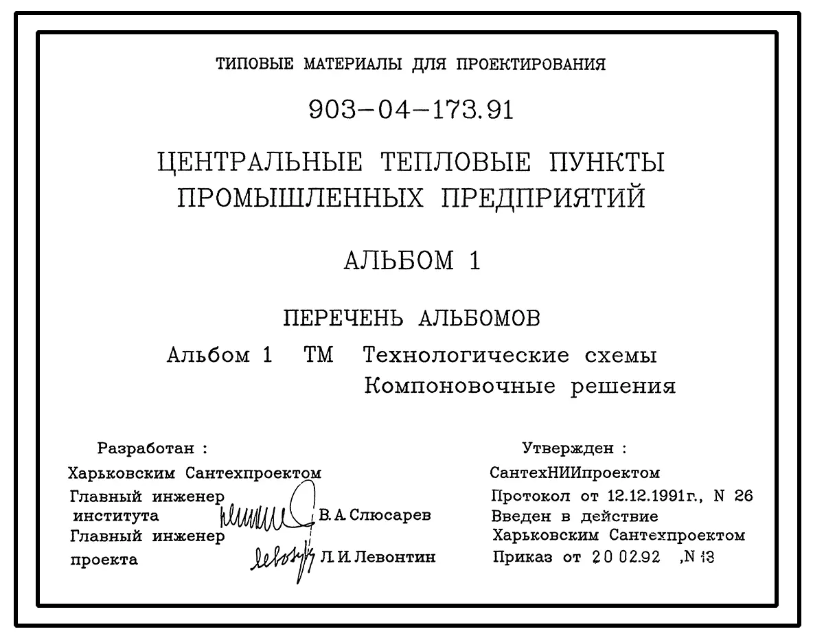 Типовой проект 903-04-173.91 Центральные тепловые пункты промышленных предприятий