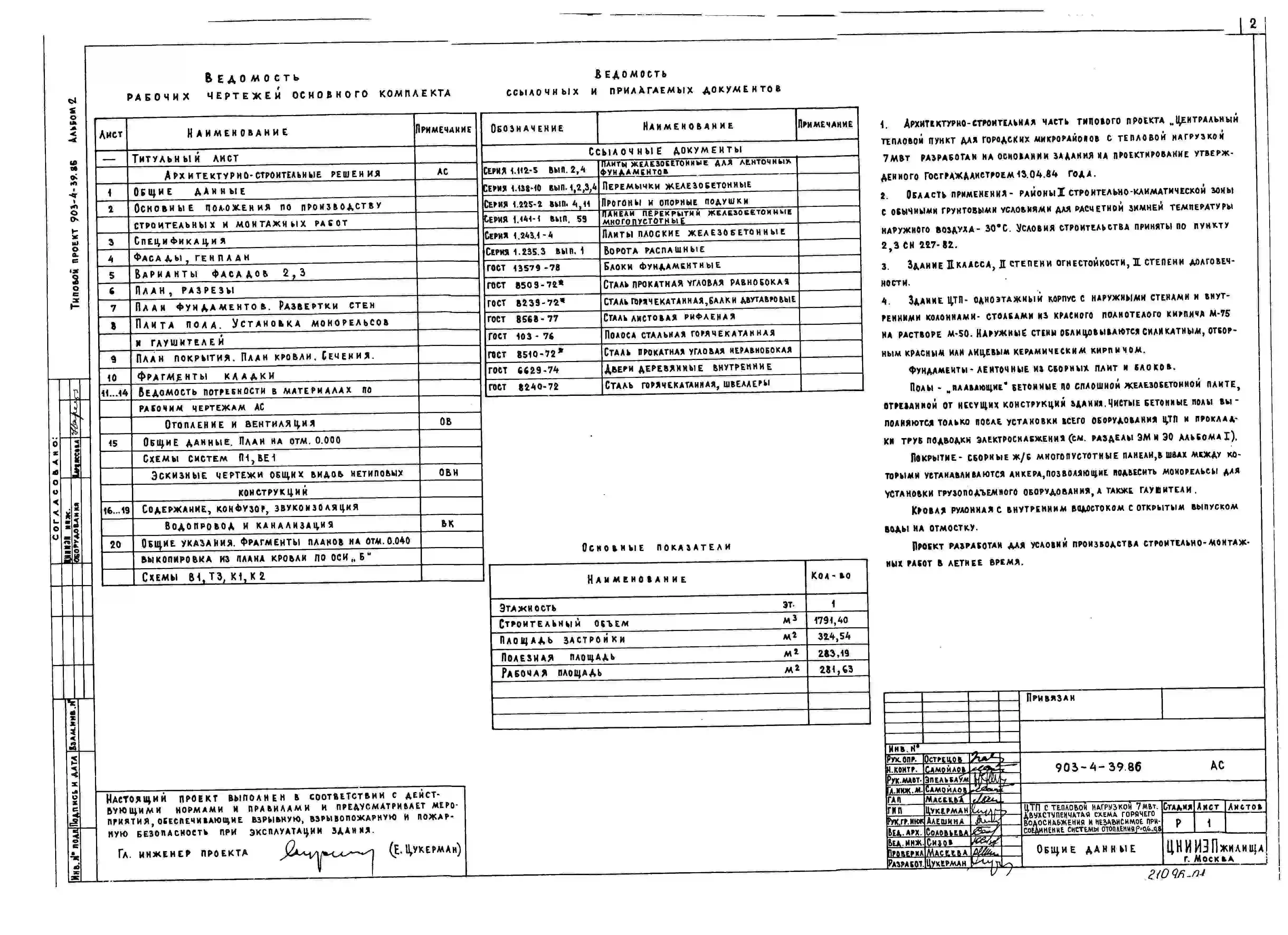 Типовой проект 903-4-39.86 Центральный тепловой пункт для городских микрорайонов тепловой нагрузкой 7 МВт. Двухступенчатая схема горячего водоснабжения и независимое присоединение системы отопления. Кирпичный вариант
