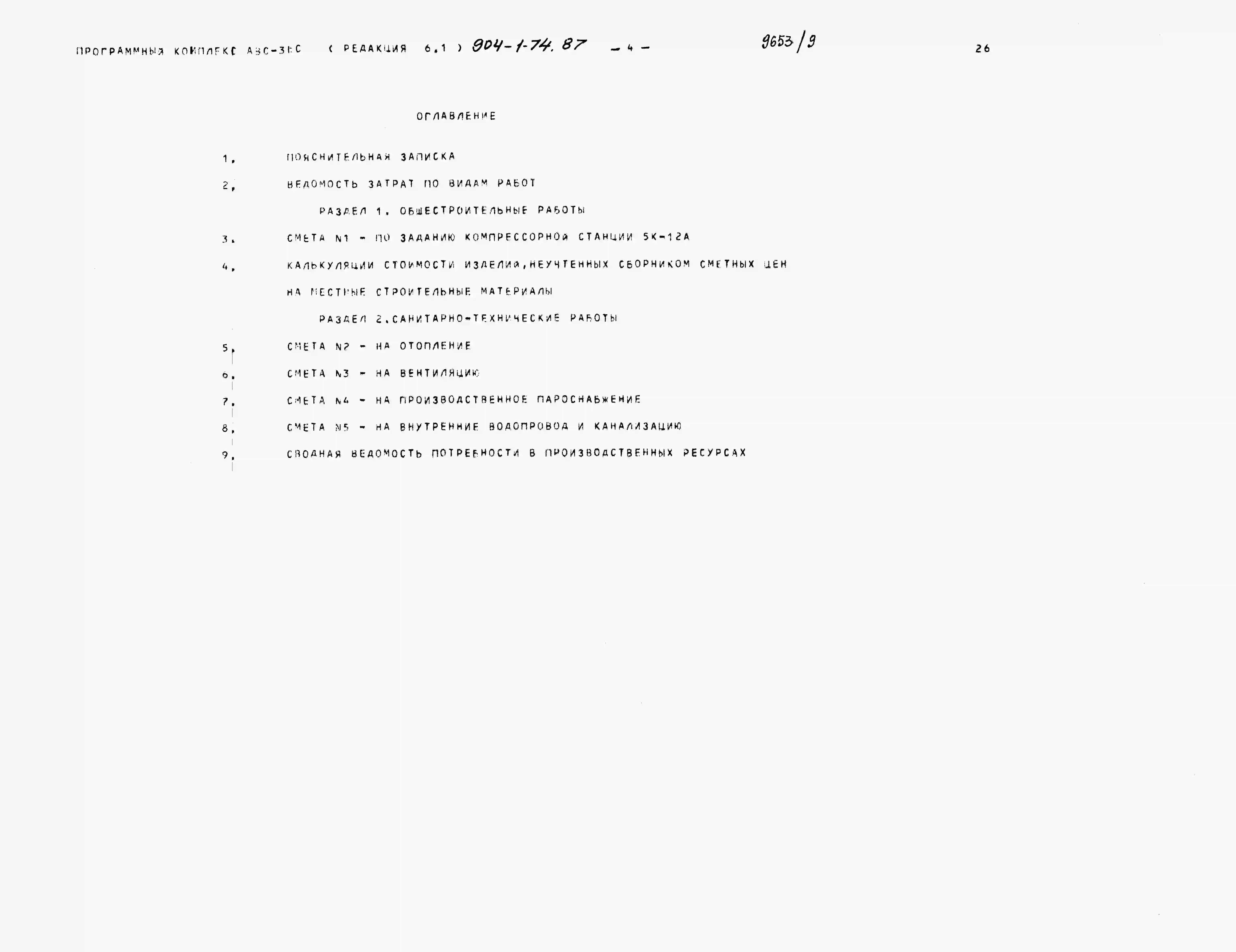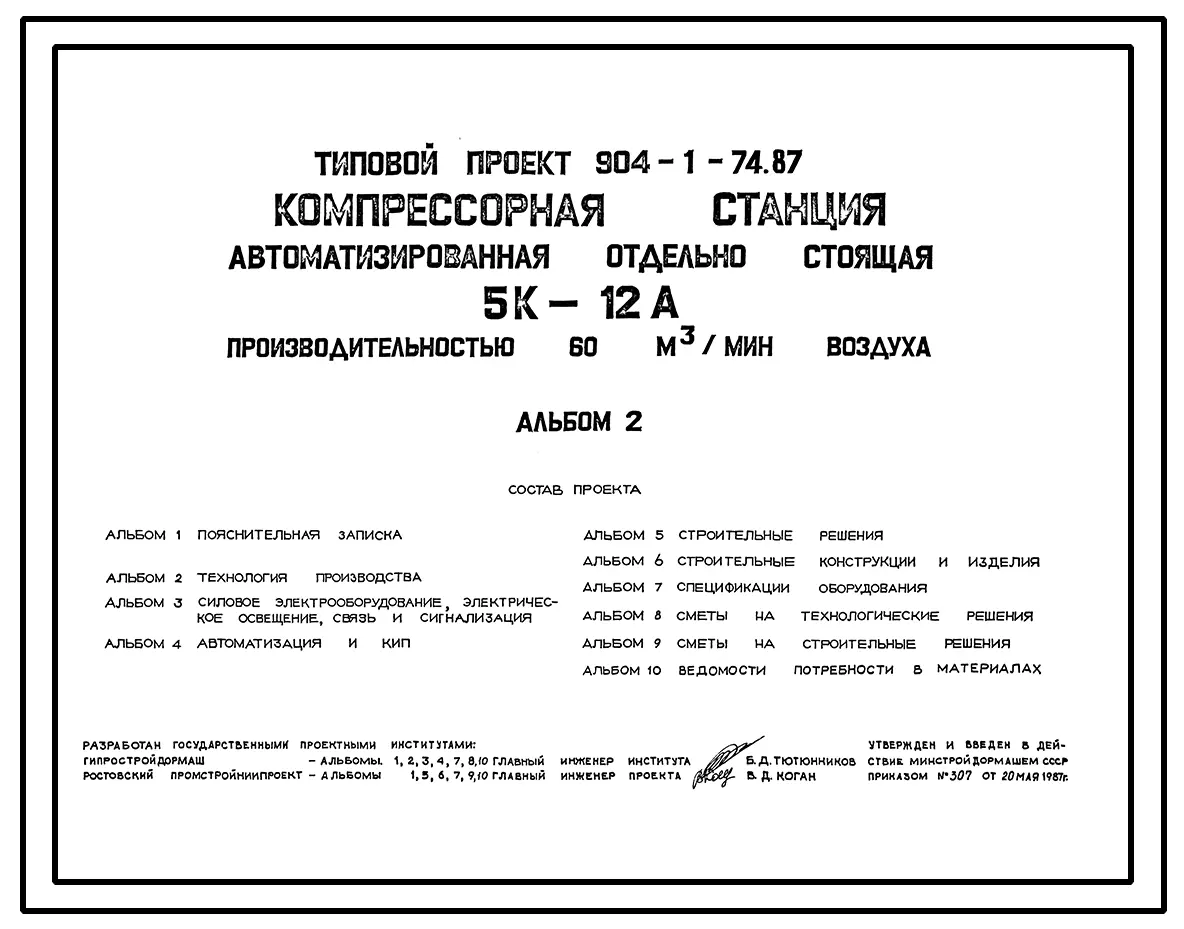 Типовой проект 904-1-74.87 Компрессорная станция автоматизированная отдельно стоящая 5К-12А, производительностью 60 куб.м/мин воздуха