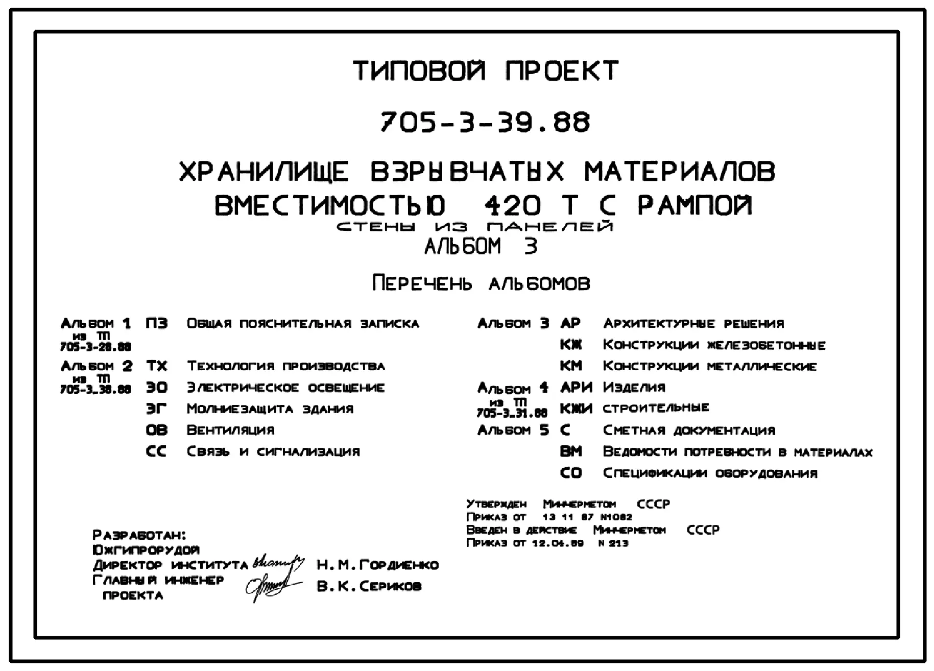 Типовой проект 705-3-39.88 Хранилище взрывчатых материалов вместимостью 420 т с рампой. Стены из панелей